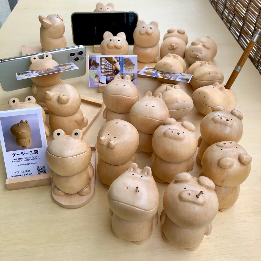 ケージー工房では、「使える置物」をコンセプトに、手のひらサイズの木彫り作品を海辺の町で丁寧に制作しています。
