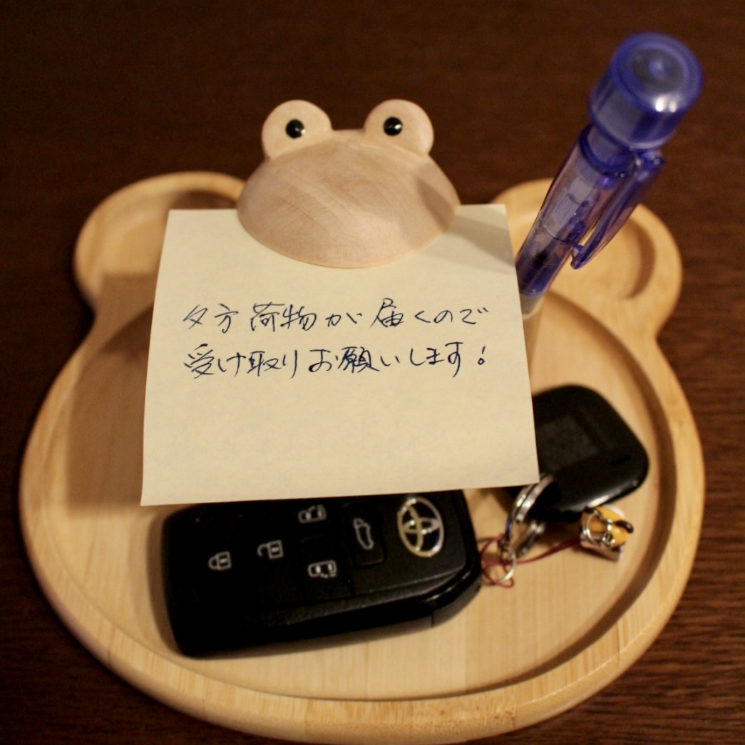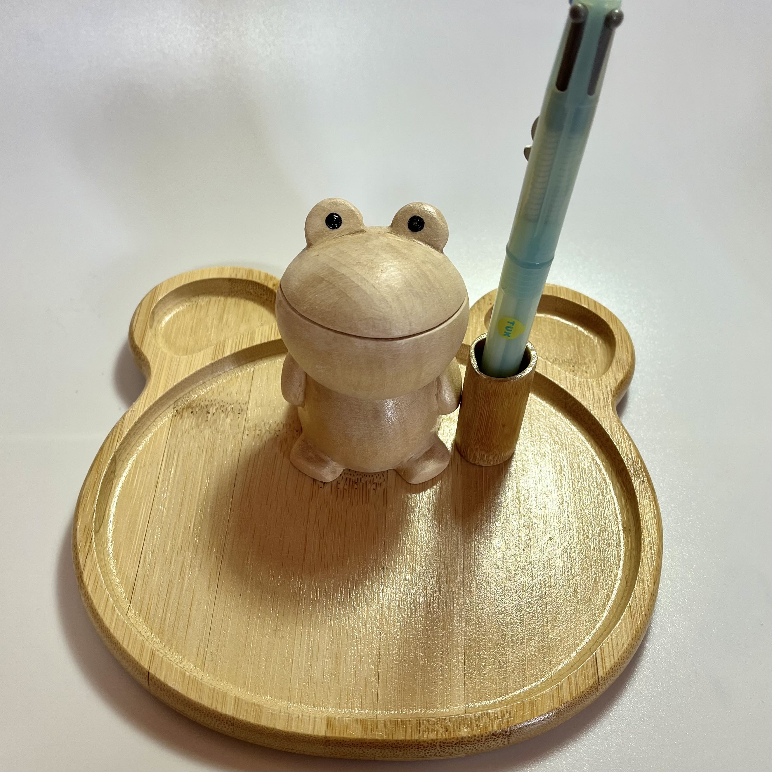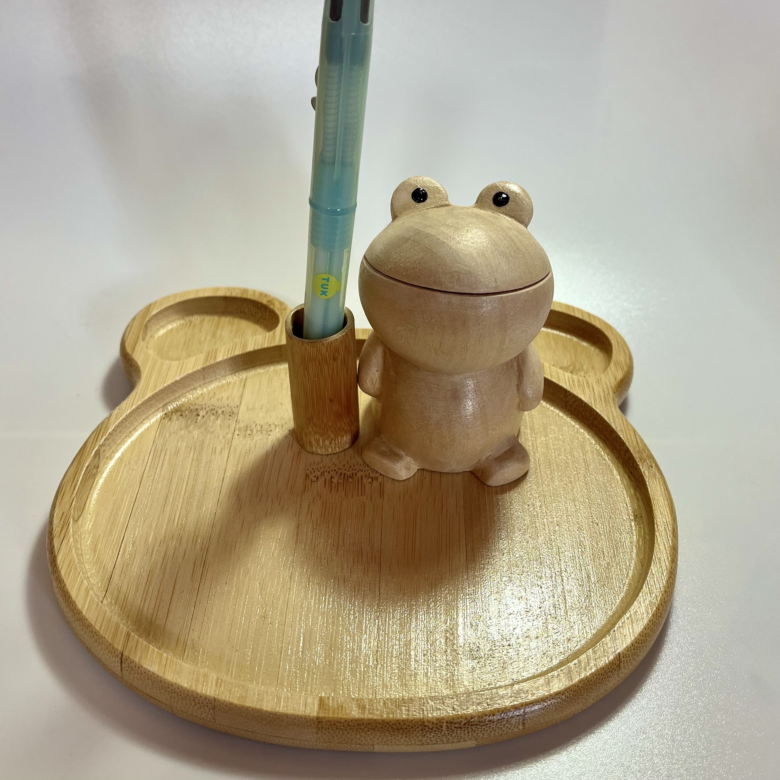 友人より「カエルのスマホスタンドを玄関のキー&ペンスタンドにアレンジしてほしい」とのオーダーを受けて制作しました。
