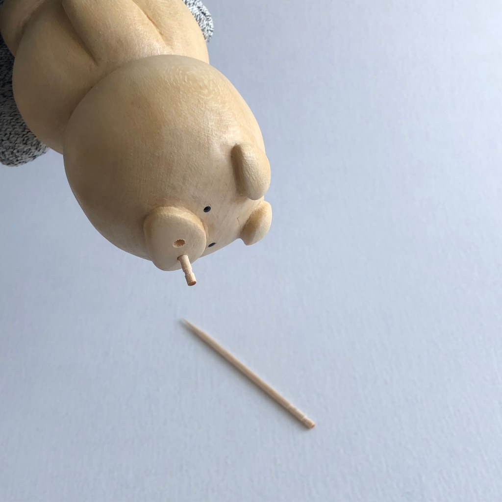 下に向けて細かく揺らすと左の鼻から楊枝(ようじ)が出ます!