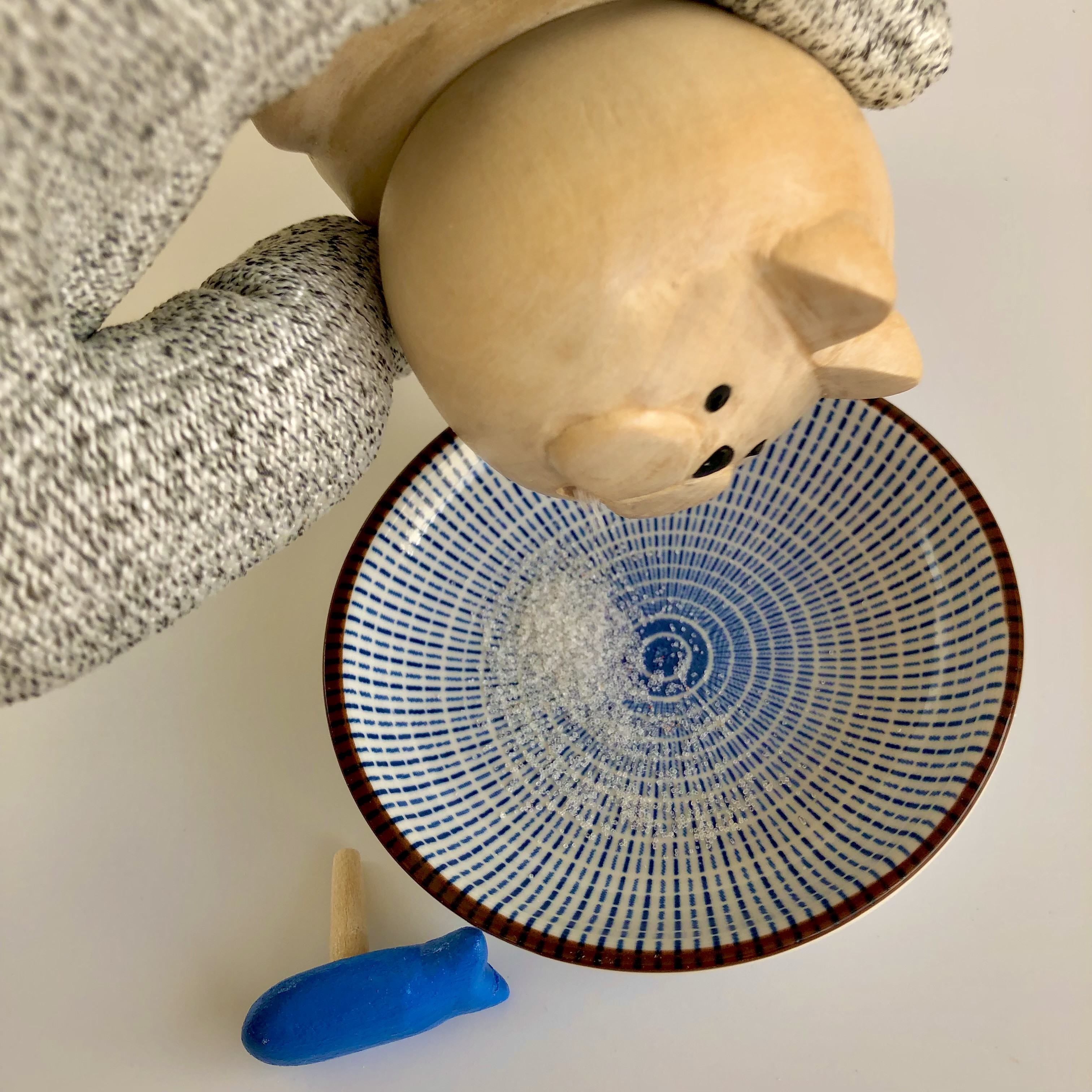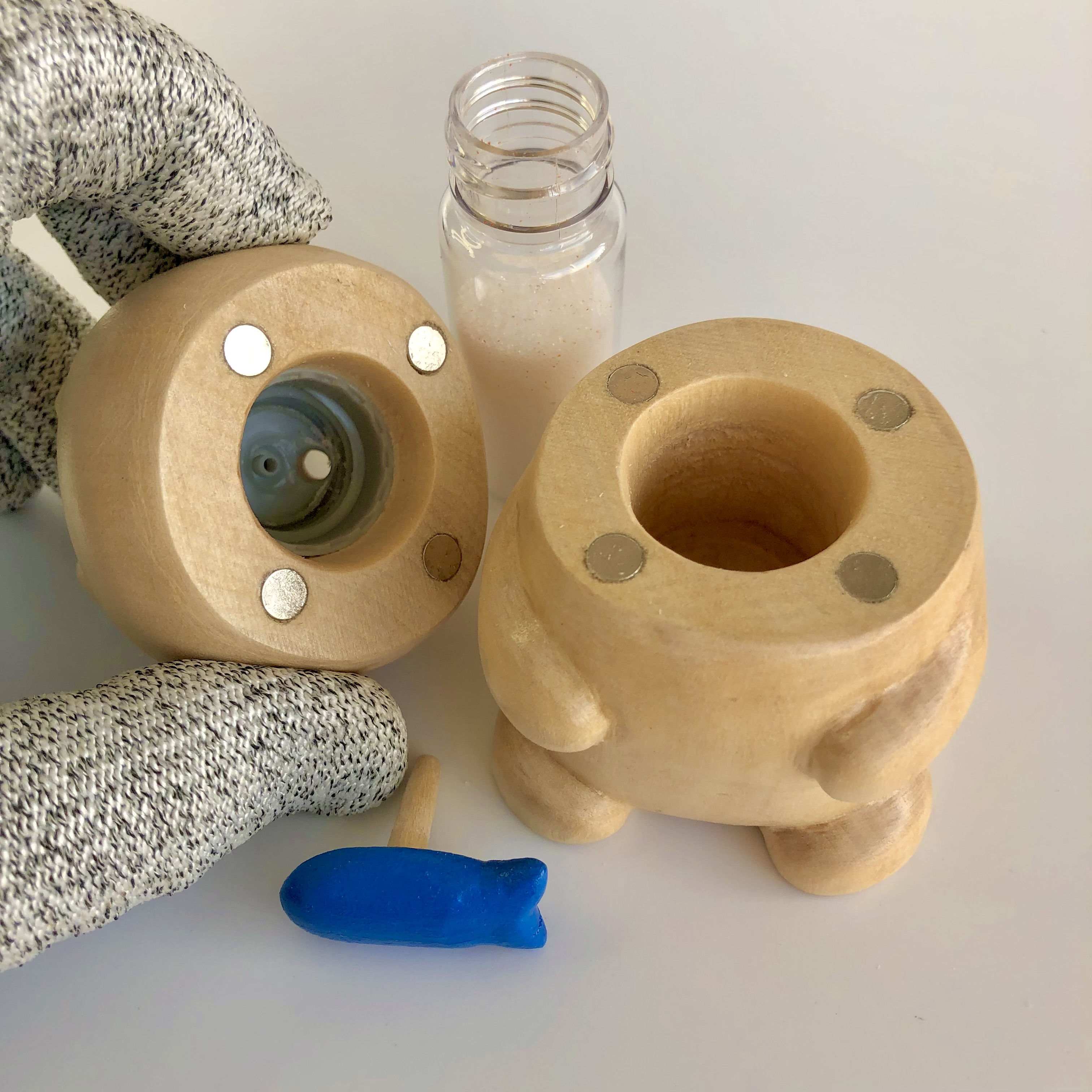 中にスパイスボトルを内蔵しているので下に向けると口から塩やコショウを出せます!