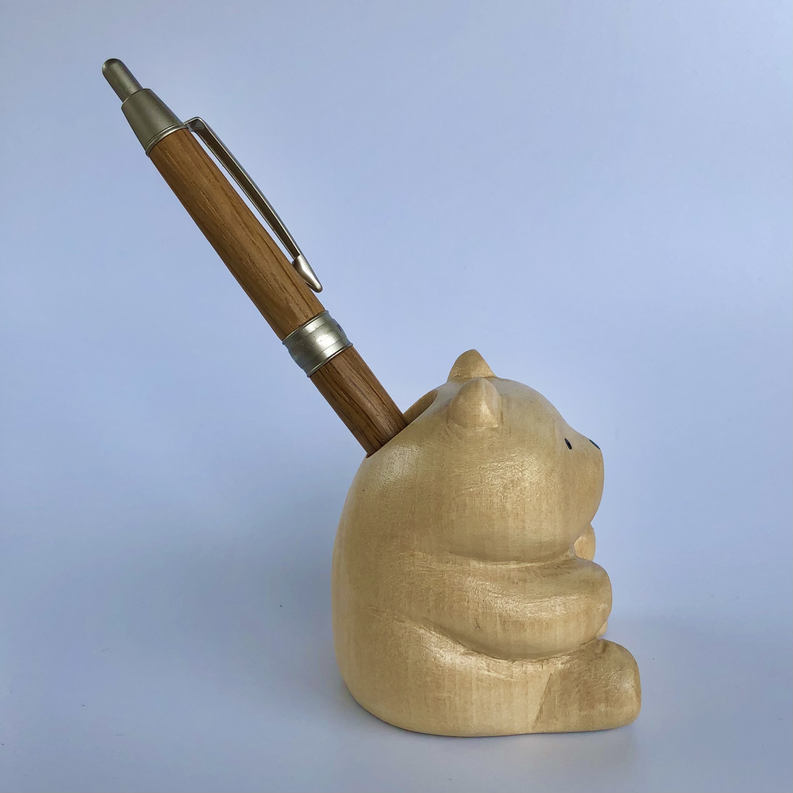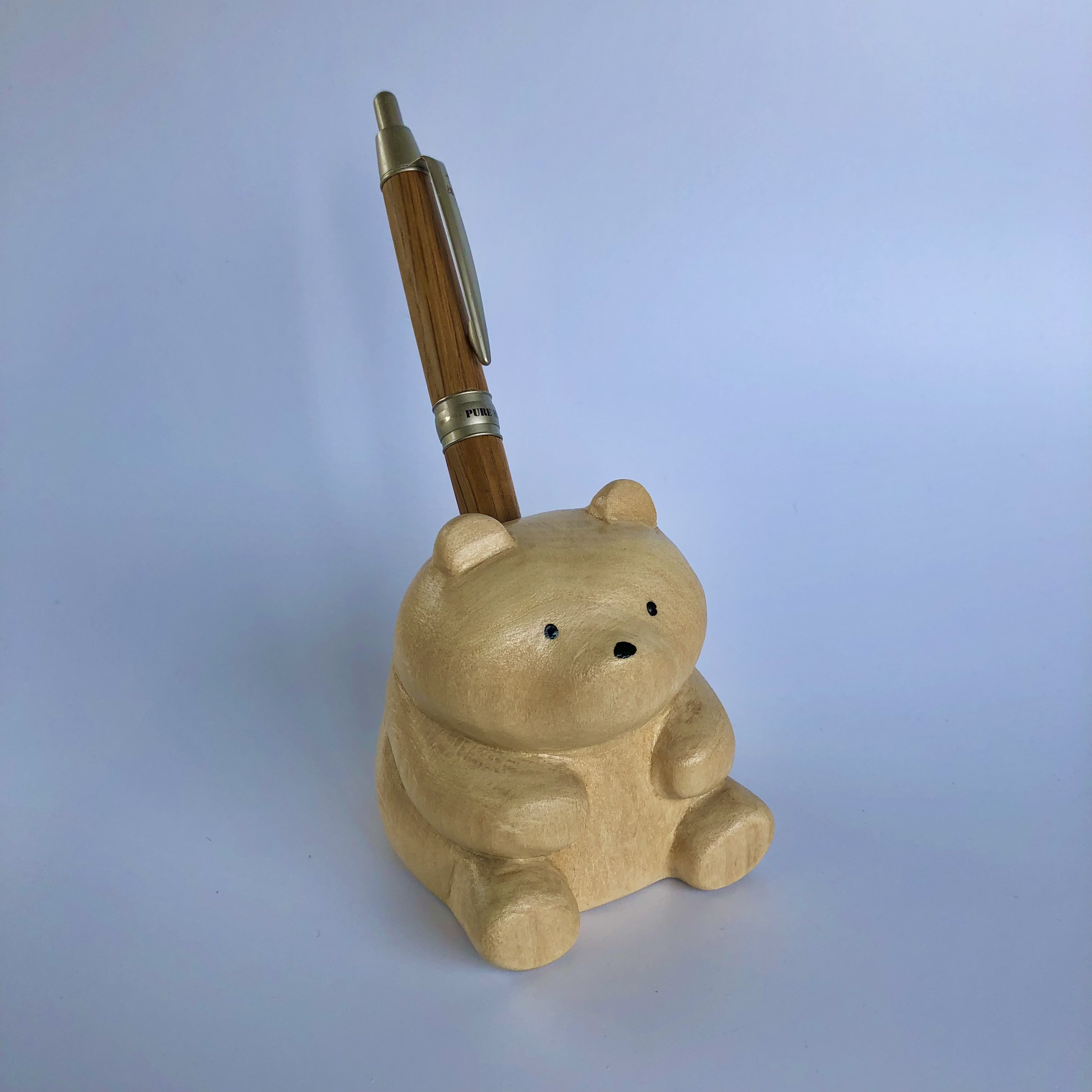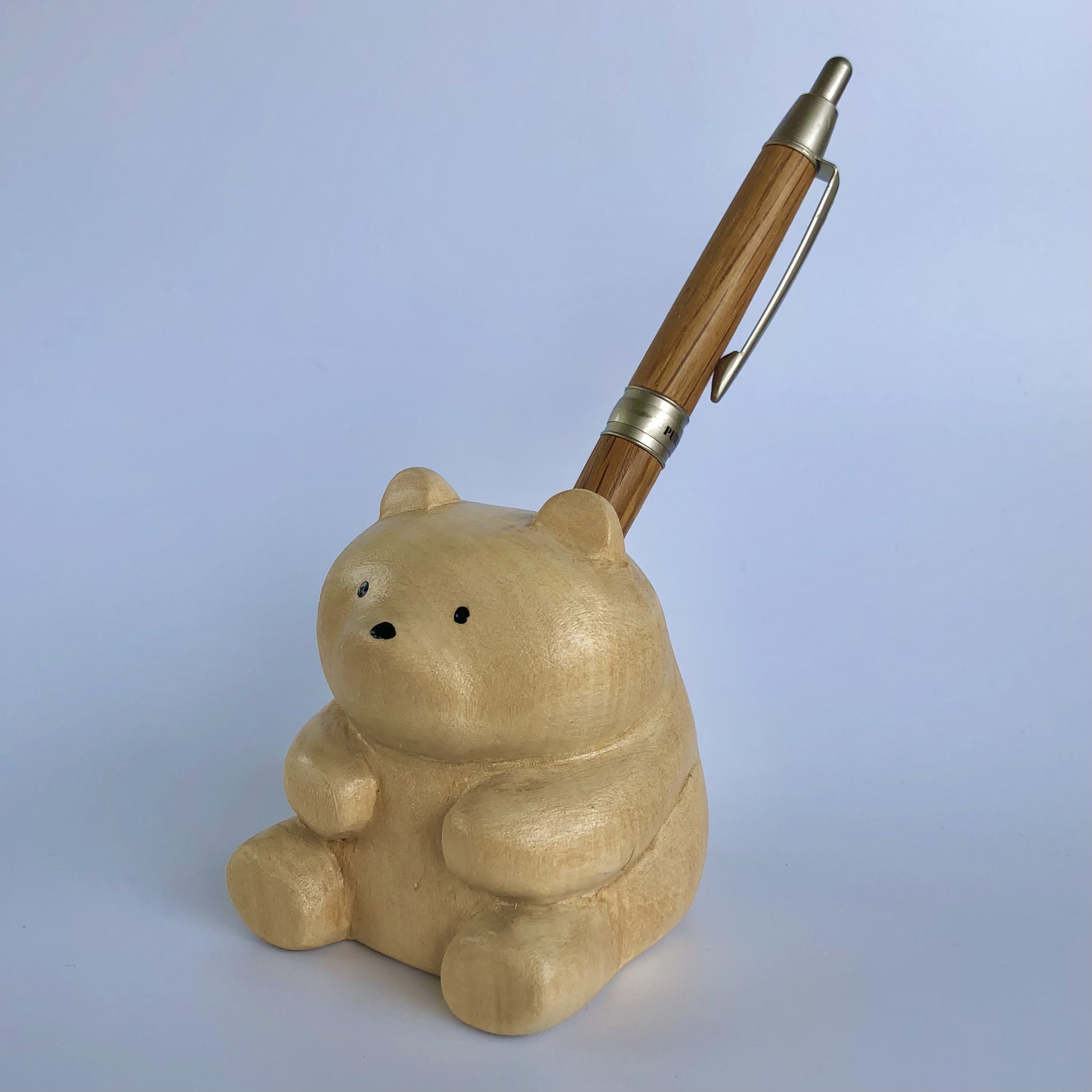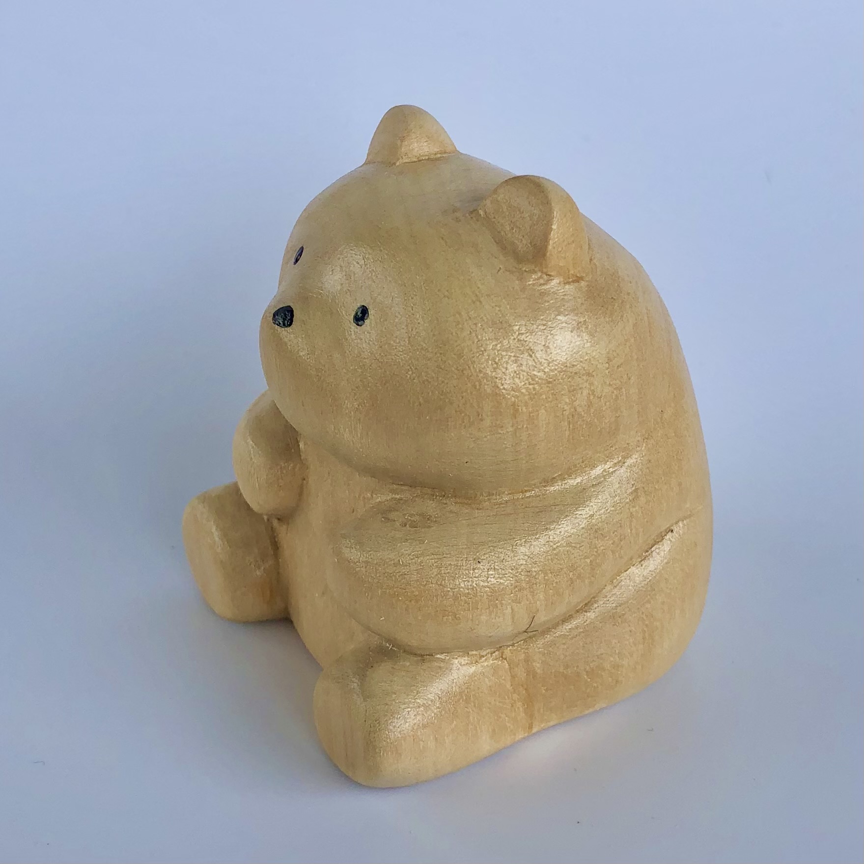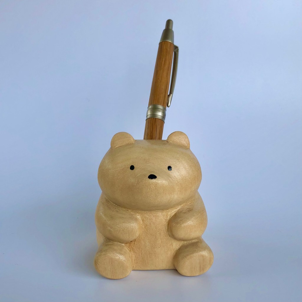 木彫りのクマ(ペン立て・ようじ入れ) 丸みのあるフォルムで座る木彫りのクマです。背中に穴を開けてあるので、ペン立てやようじ入れなど実用をかねた置物としてお使いください。汚れにくくするため、水性ニスで仕上げています。 素材天然木(シナ)、水性ニス 高さ:約6cm、幅:約5.5cm 備考手作りのため多少の個体差があります。お手入れの際は乾いた布で拭いてください。 ↓ご購入はこちらから↓ mine 共有: クリックして X で共有 (新しいウィンドウで開きます) X Facebook で共有するにはクリックしてください (新しいウィンドウで開きます) Facebook いいね 読み込み中… 関連