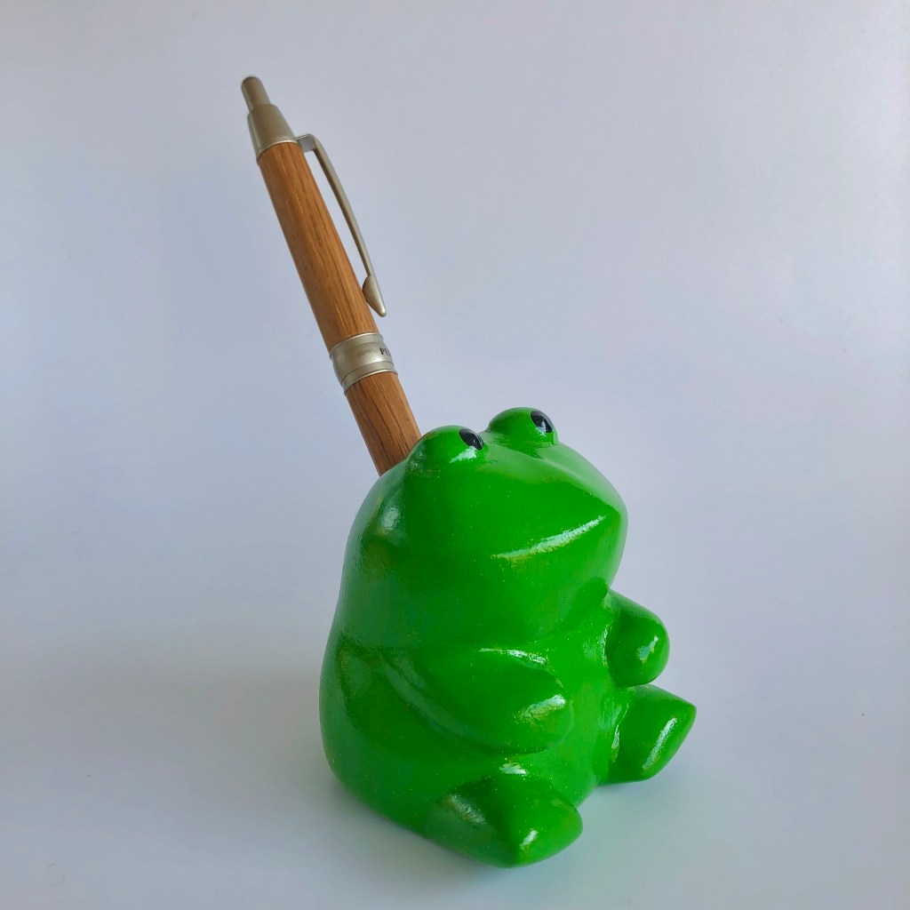 木彫りのカエル(ペン立て・ようじ入れ) 丸みのあるフォルムで座る木彫りのカエルです。背中に穴を開けてあるので、ペン立てやようじ入れなど実用をかねた置物としてお使いください。汚れにくくするため、水性ニスで仕上げています。 素材天然木(シナ)水性塗料、水性ニス 高さ:約6cm、幅:約5.5cm 備考手作りのため多少の個体差があります。お手入れの際は乾いた布で拭いてください。 ↓ご購入はこちらから↓ 共有: クリックして X で共有 (新しいウィンドウで開きます) X Facebook で共有するにはクリックしてください (新しいウィンドウで開きます) Facebook いいね 読み込み中… 関連