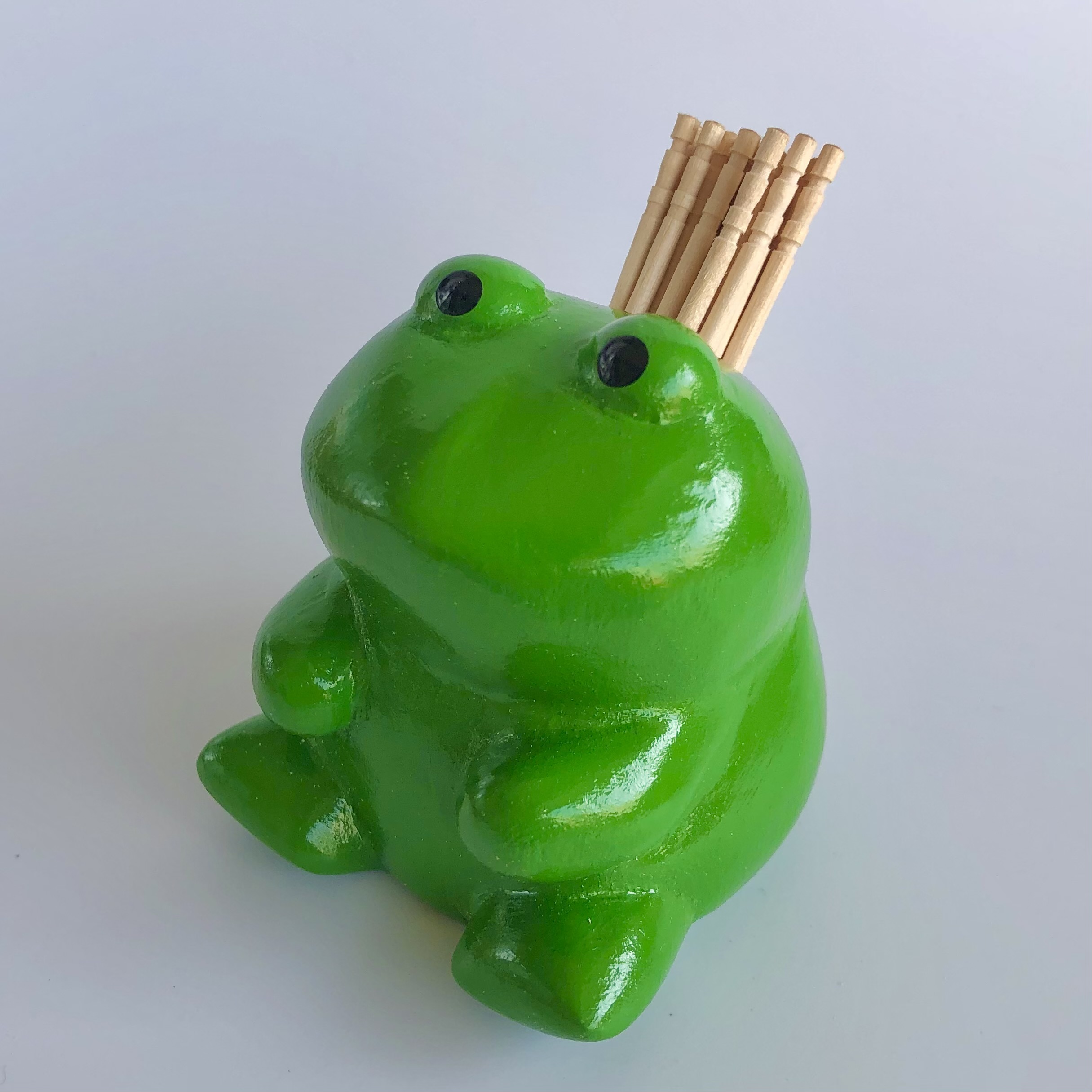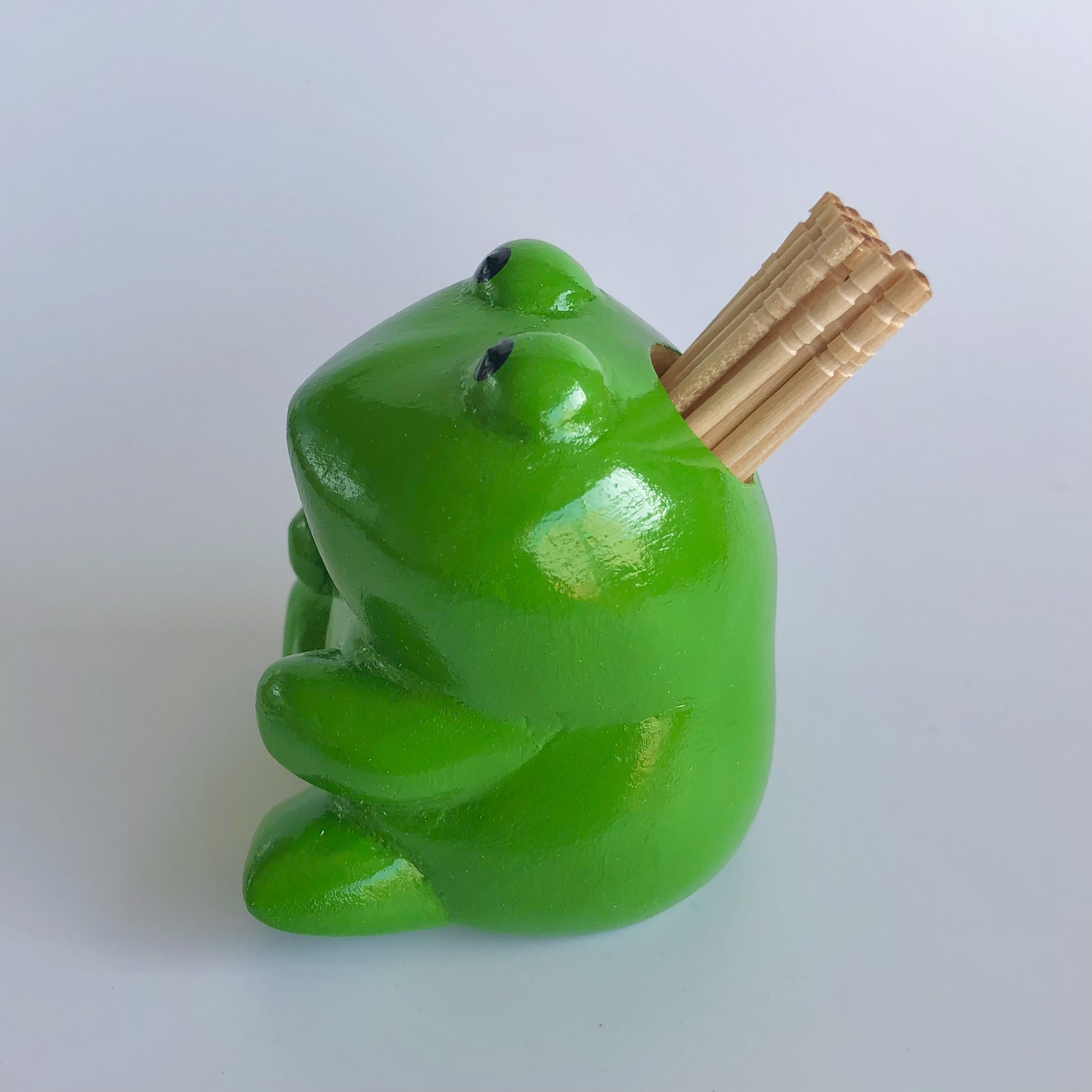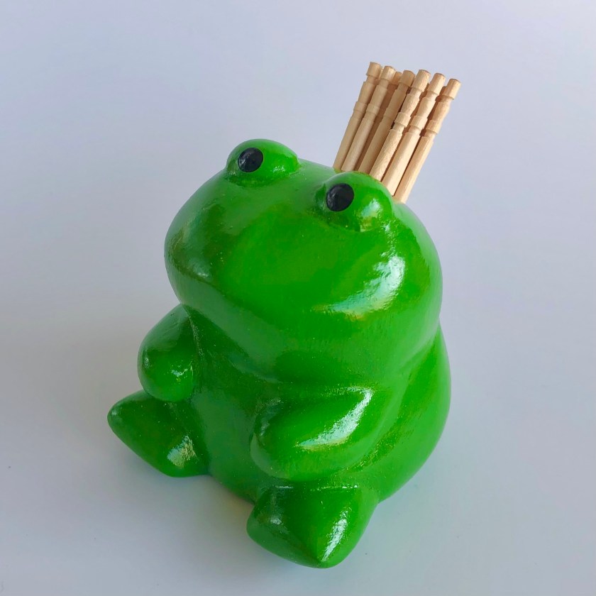 木彫りのカエル(ペン立て・ようじ入れ)