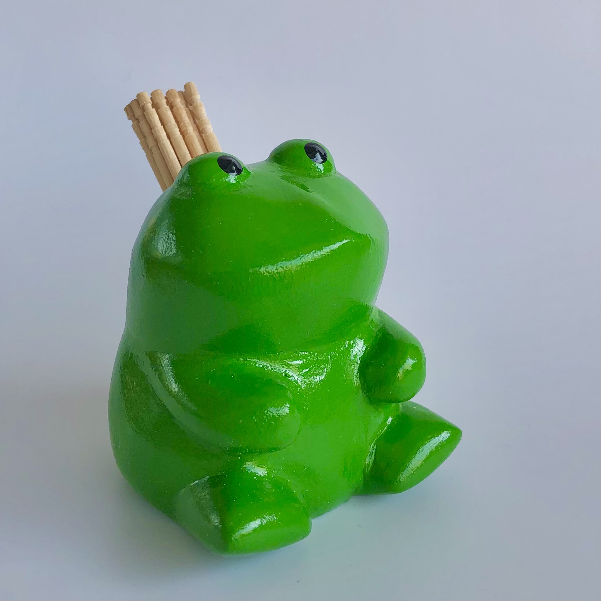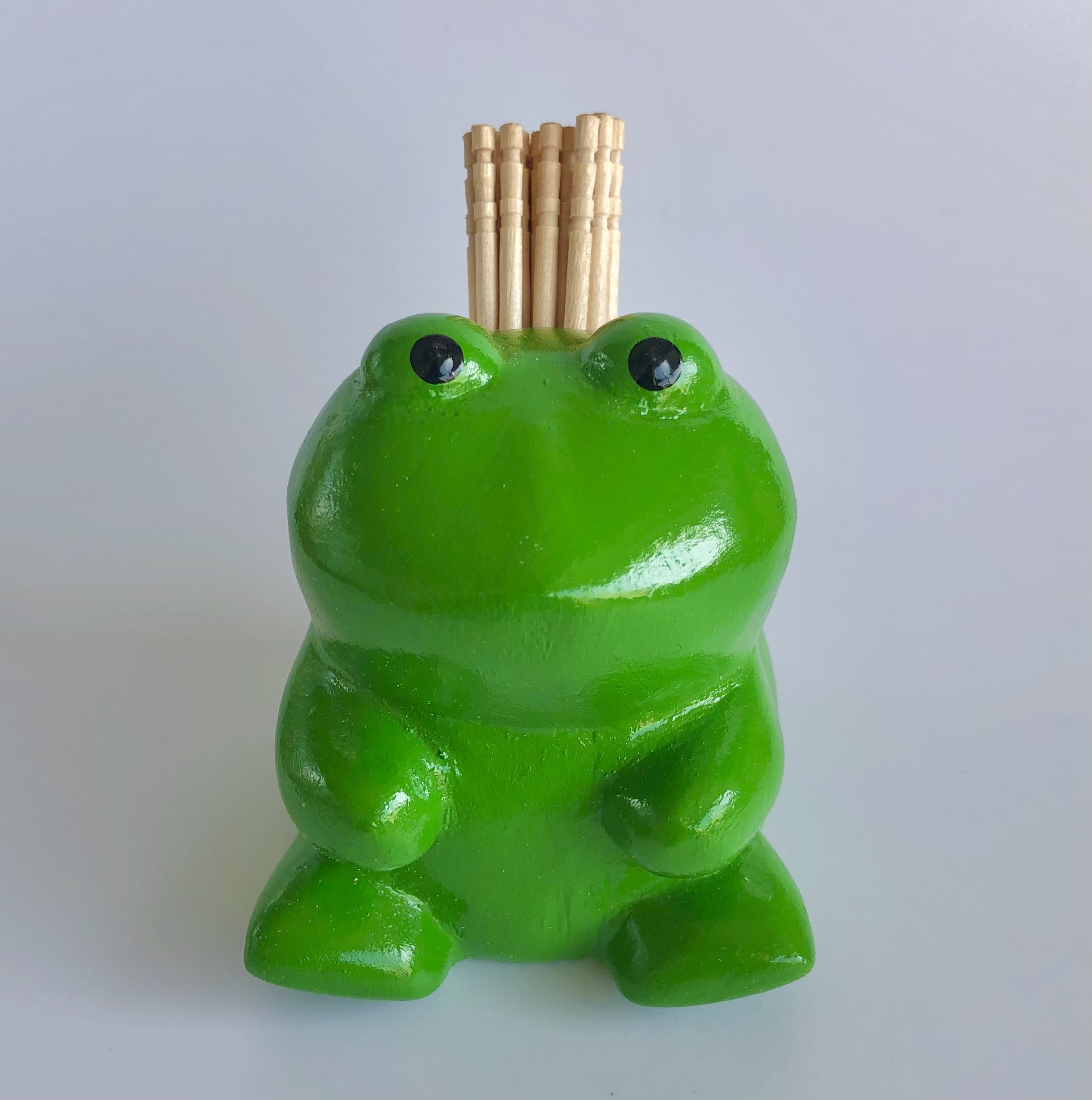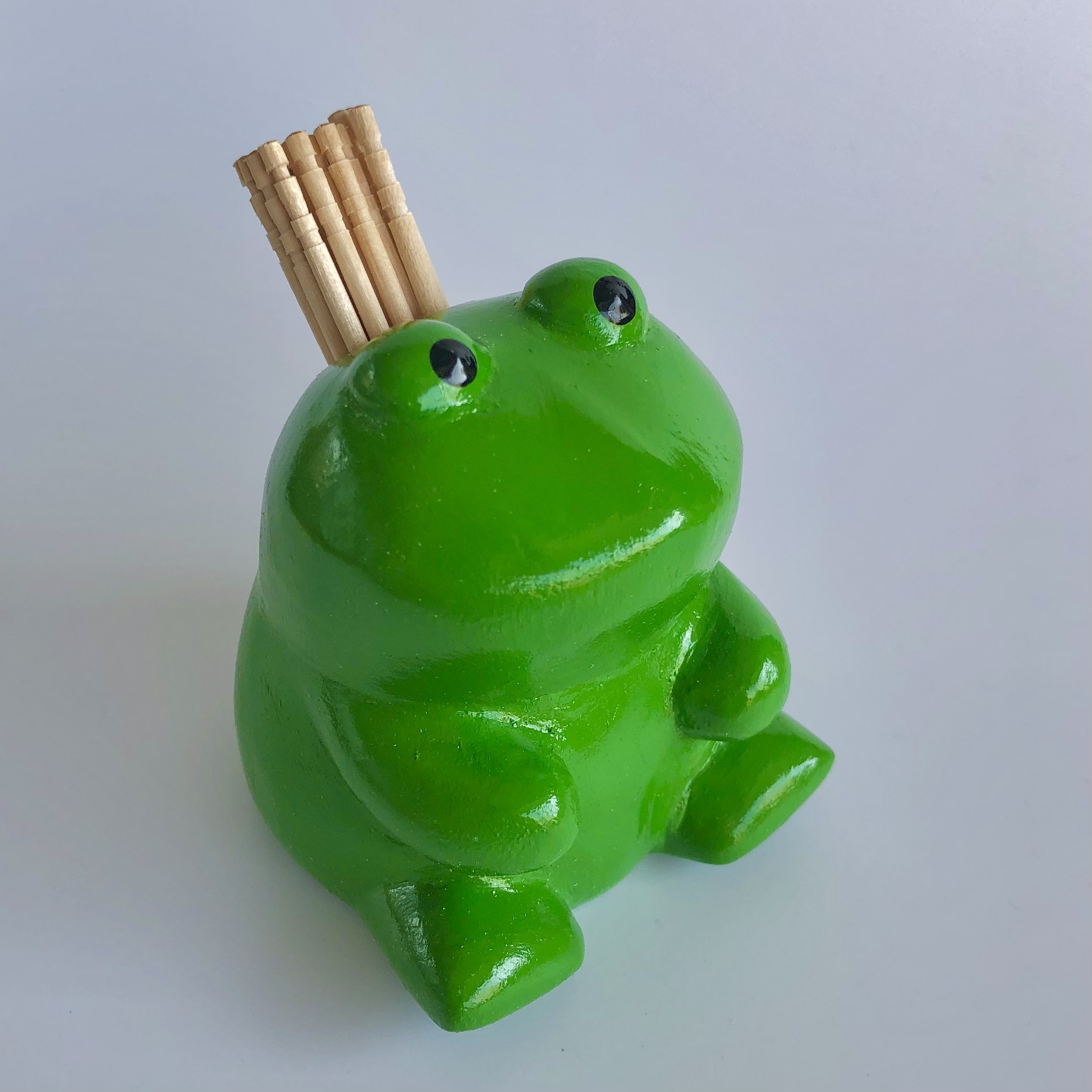 木彫りのカエル(ペン立て・ようじ入れ)