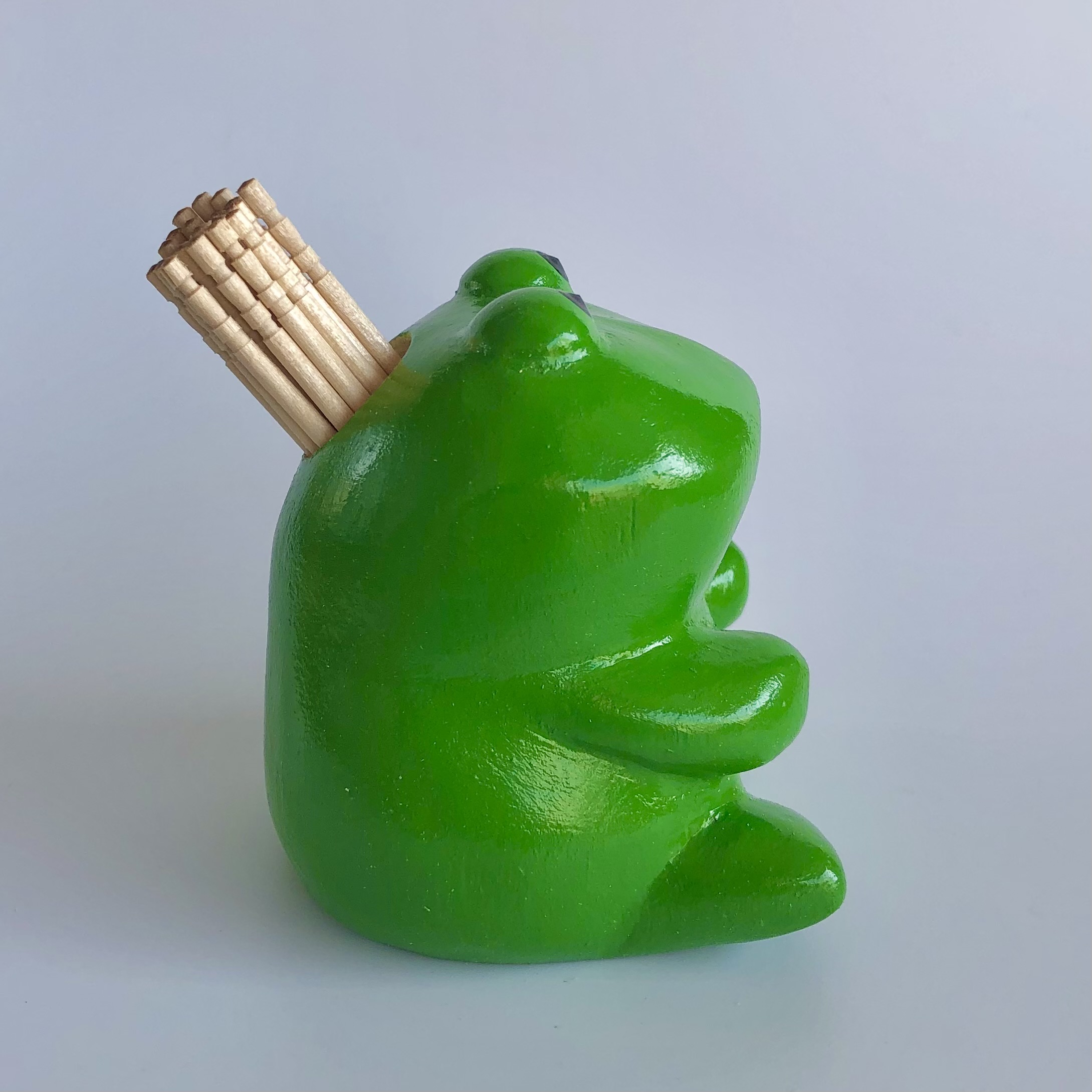 背中に穴を開けてあるので、ペン立てやようじ入れなど実用をかねた置物としてお使いください。
