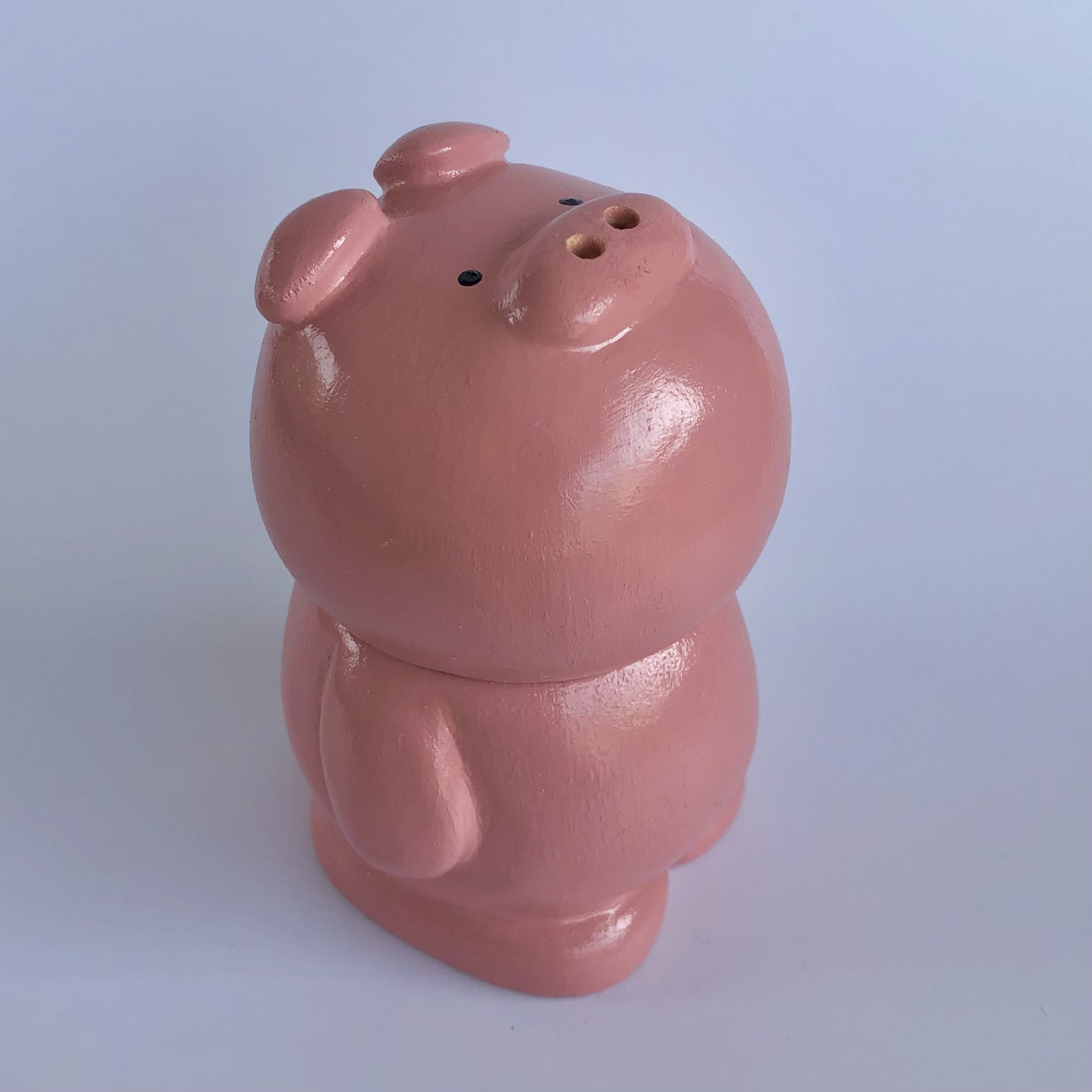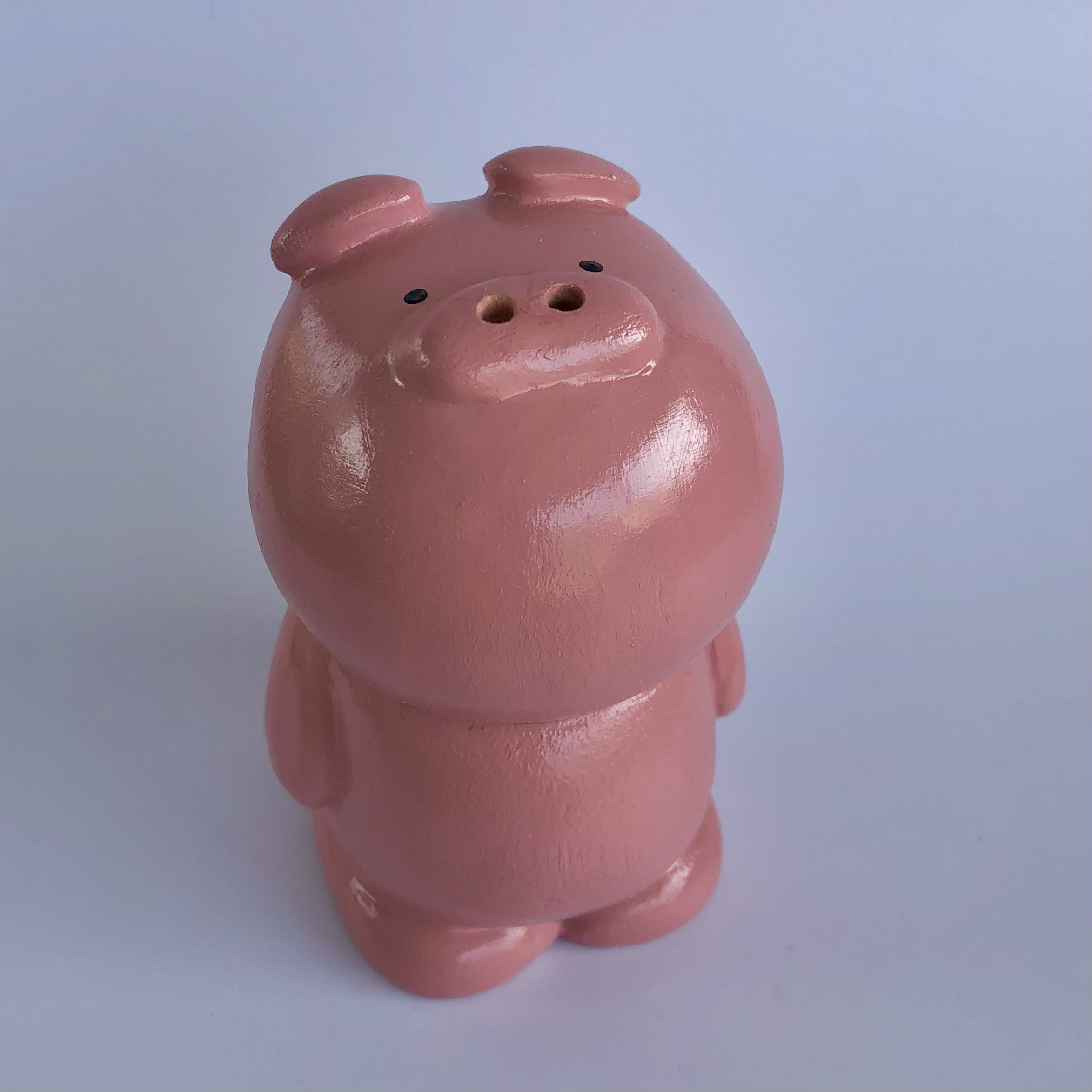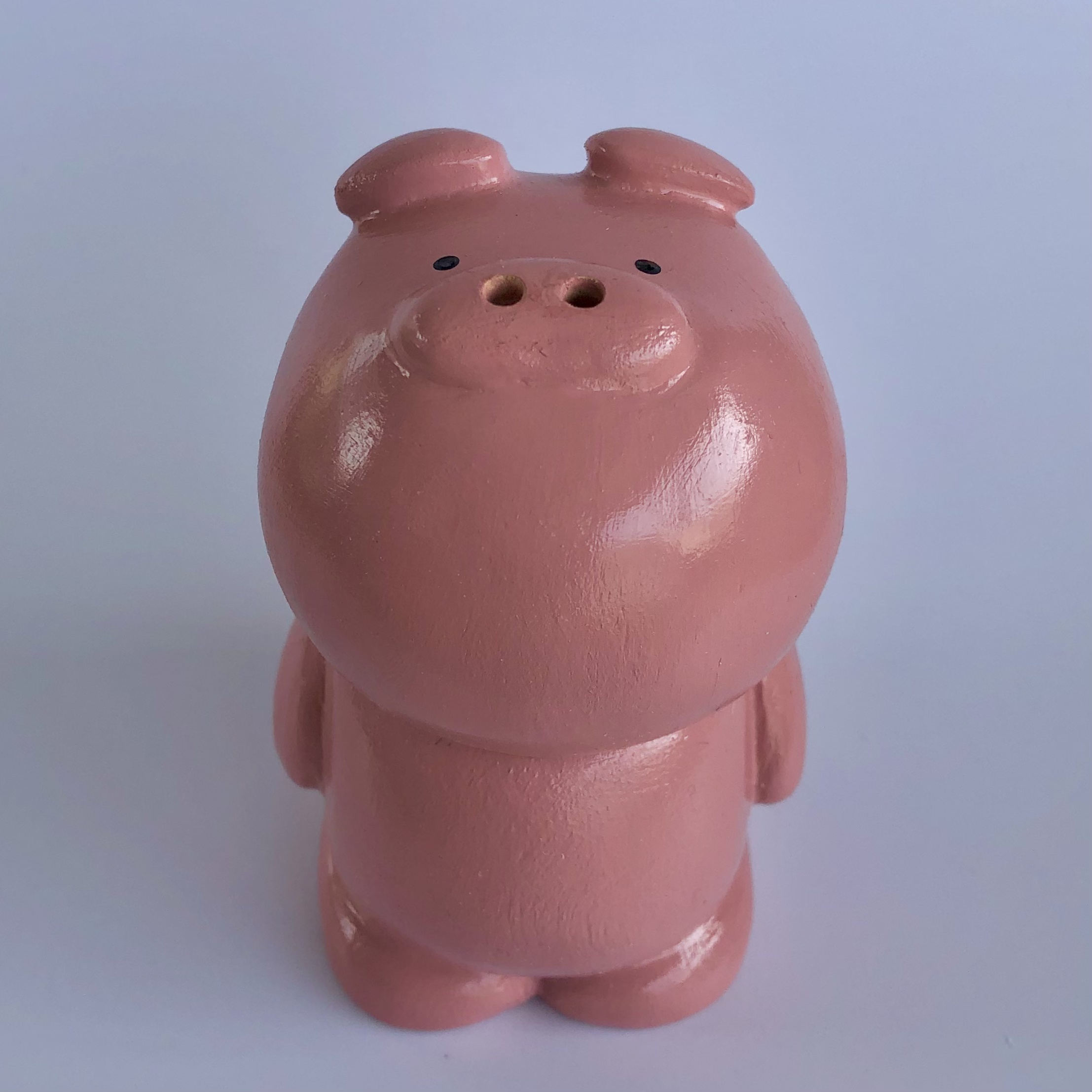 ようじが出るピンクのブタ(木彫り) 丸みのあるフォルムで空を見上げる木彫りのブタです。下に向けて細かく揺らすと左の鼻から楊枝(ようじ)が出ます!実用をかねた置物としてテーブルなどに添えていただければ幸いです。日用で汚れにくくするため、水性ニスを二度塗りしました。 素材天然木(シナ)、磁石、水性ニス(二度塗り仕上げ)高さ:約8.3cm、幅:約5.5cm 備考手作りのため多少の個体差があります。湿度などにより楊枝が出にくい場合があります。楊枝は詰めすぎず、30本程度まででご使用ください。 ↓ご購入はこちらから↓ 共有: クリックして X で共有 (新しいウィンドウで開きます) X Facebook で共有するにはクリックしてください (新しいウィンドウで開きます) Facebook いいね 読み込み中… 関連