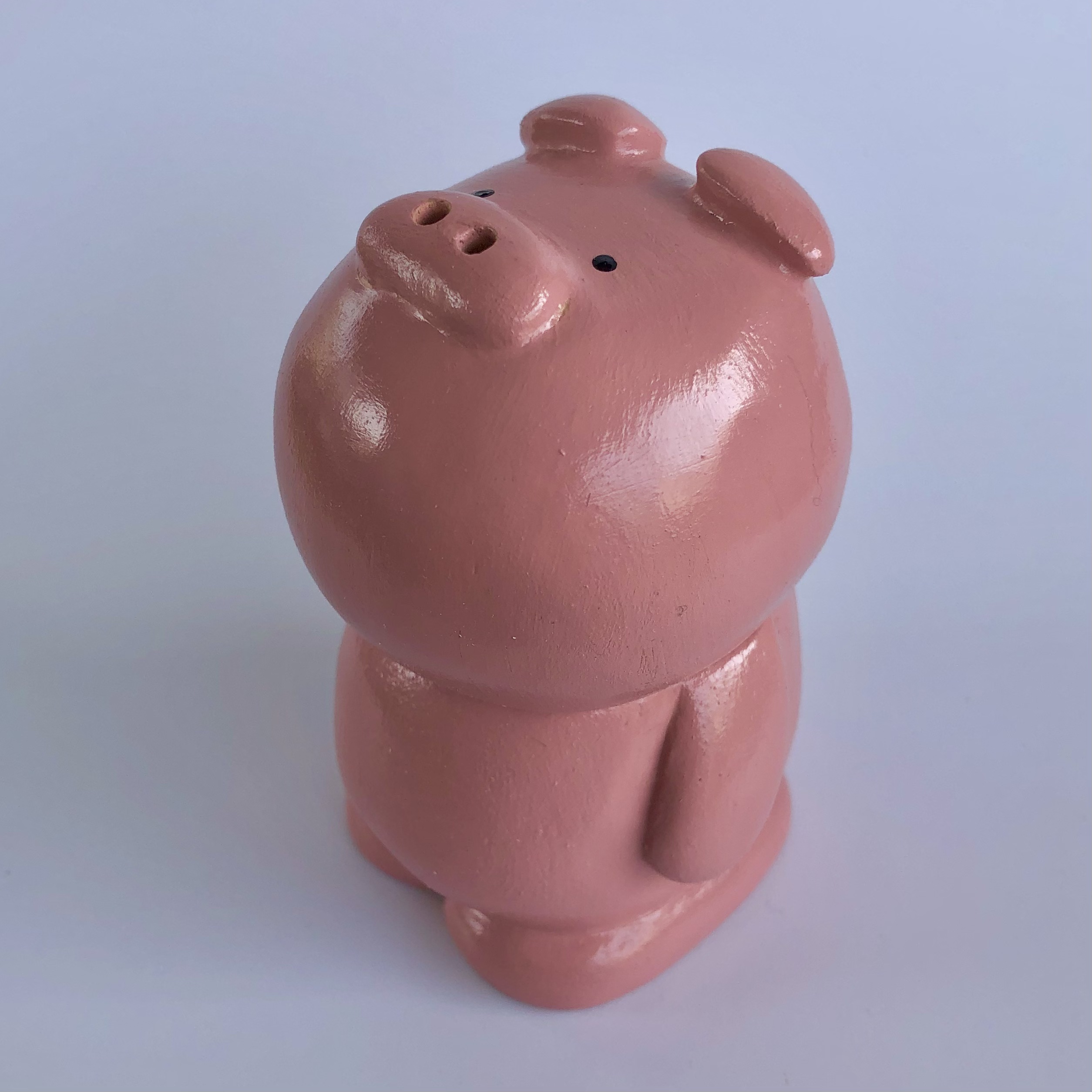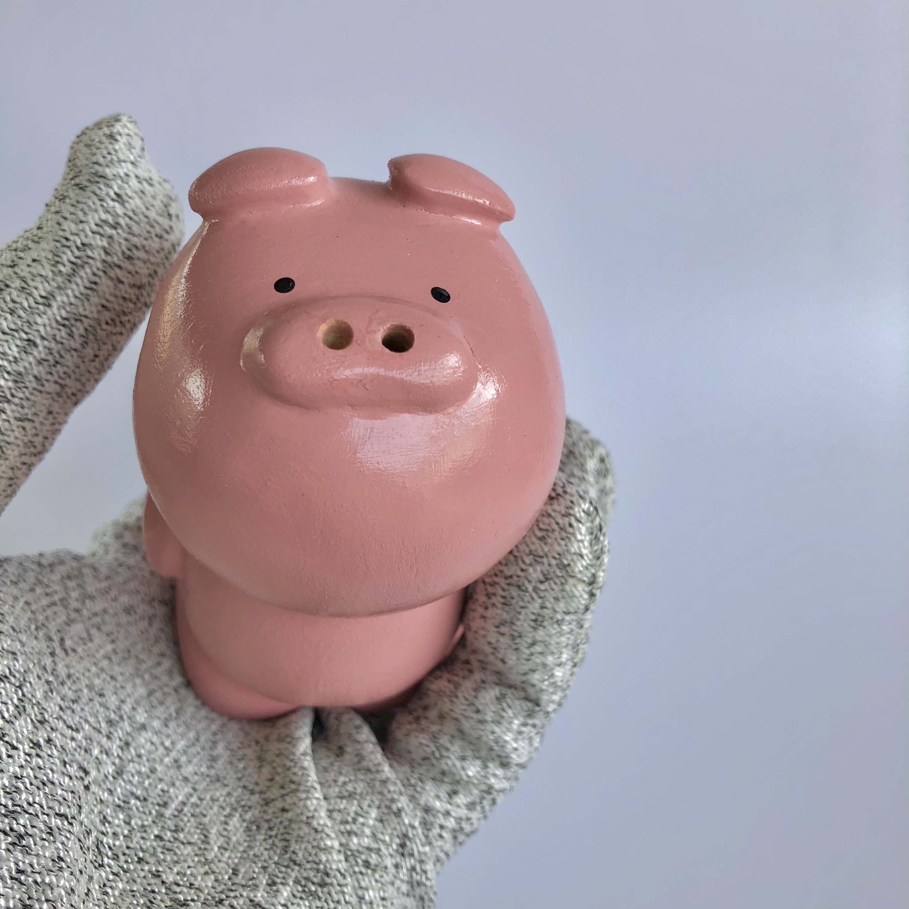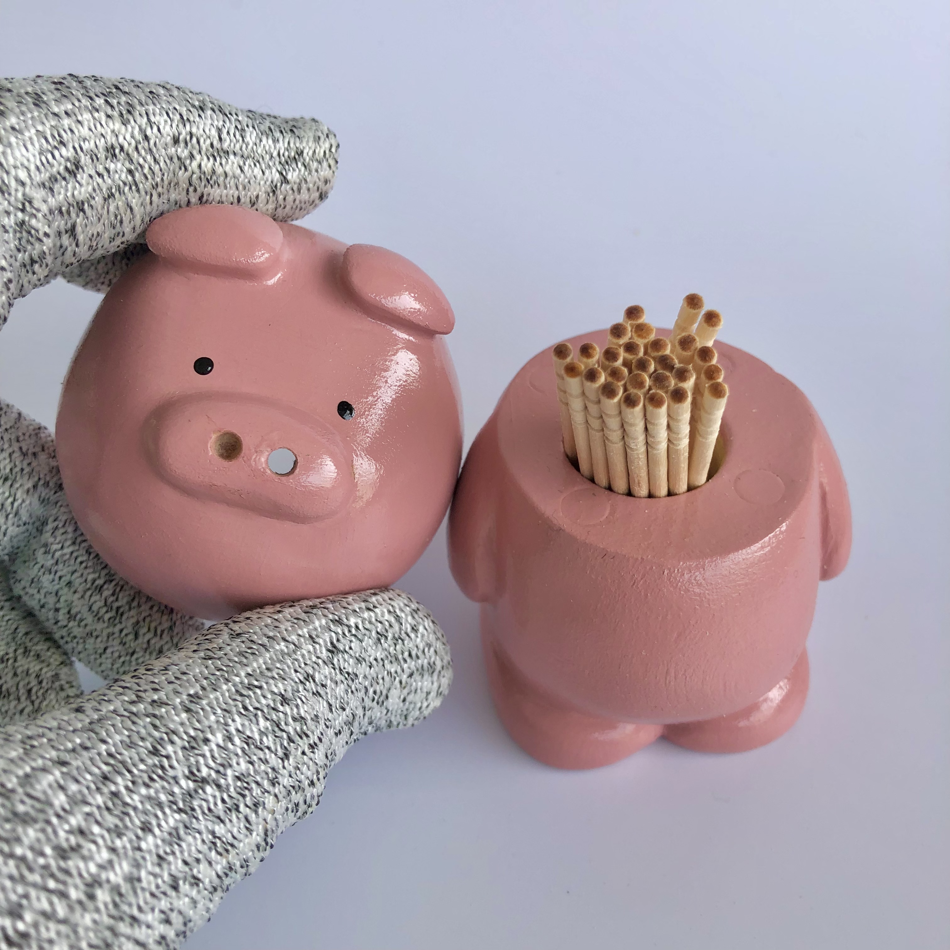 ようじが出るピンクのブタ(木彫り) 丸みのあるフォルムで空を見上げる木彫りのブタです。下に向けて細かく揺らすと左の鼻から楊枝(ようじ)が出ます!実用をかねた置物としてテーブルなどに添えていただければ幸いです。日用で汚れにくくするため、水性ニスを二度塗りしました。 素材天然木(シナ)、磁石、水性ニス(二度塗り仕上げ)高さ:約8.3cm、幅:約5.5cm 備考手作りのため多少の個体差があります。湿度などにより楊枝が出にくい場合があります。楊枝は詰めすぎず、30本程度まででご使用ください。 ↓ご購入はこちらから↓ 共有: クリックして X で共有 (新しいウィンドウで開きます) X Facebook で共有するにはクリックしてください (新しいウィンドウで開きます) Facebook いいね 読み込み中… 関連