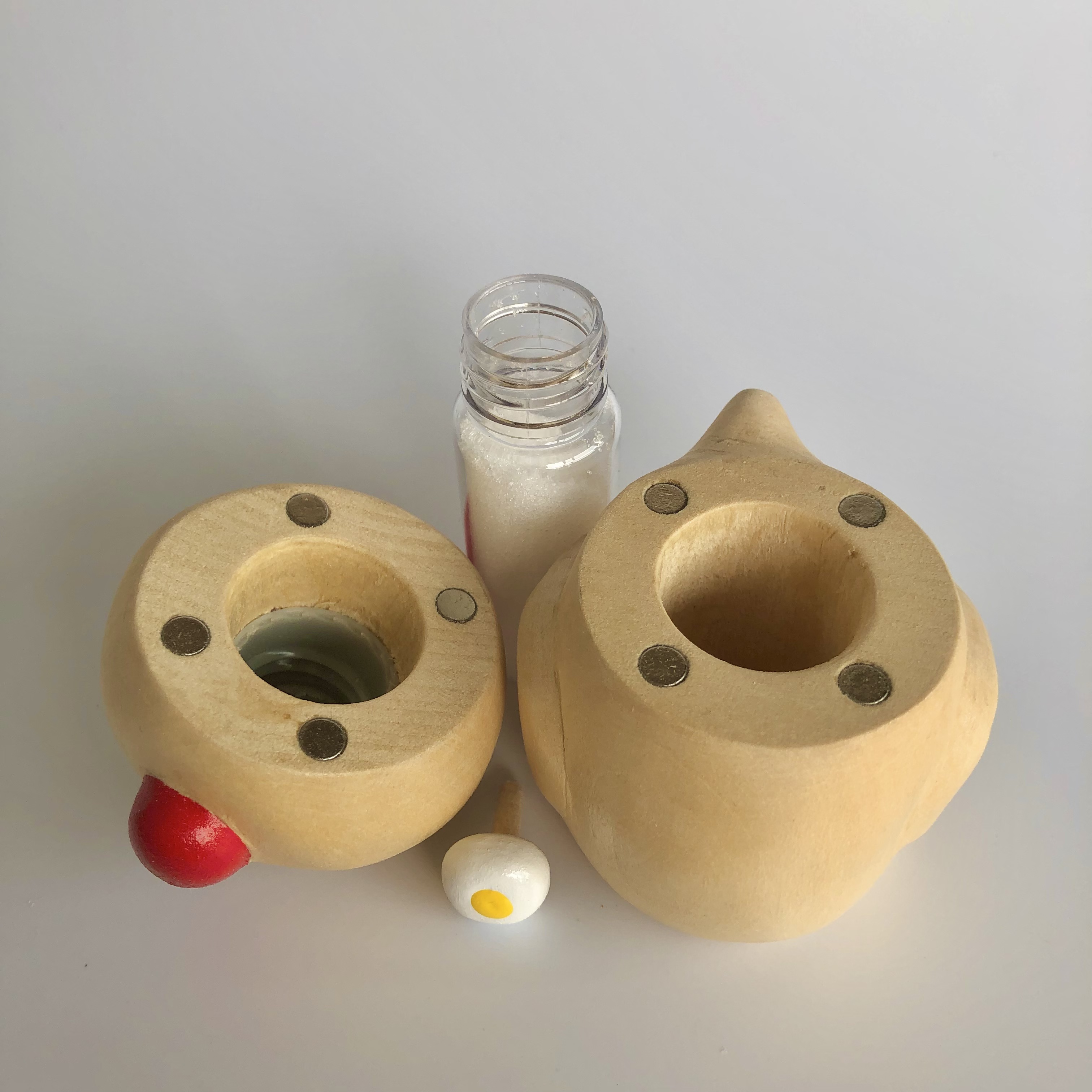 中にスパイスボトルを内蔵しているので下に向けると口から塩やコショウを出せます!