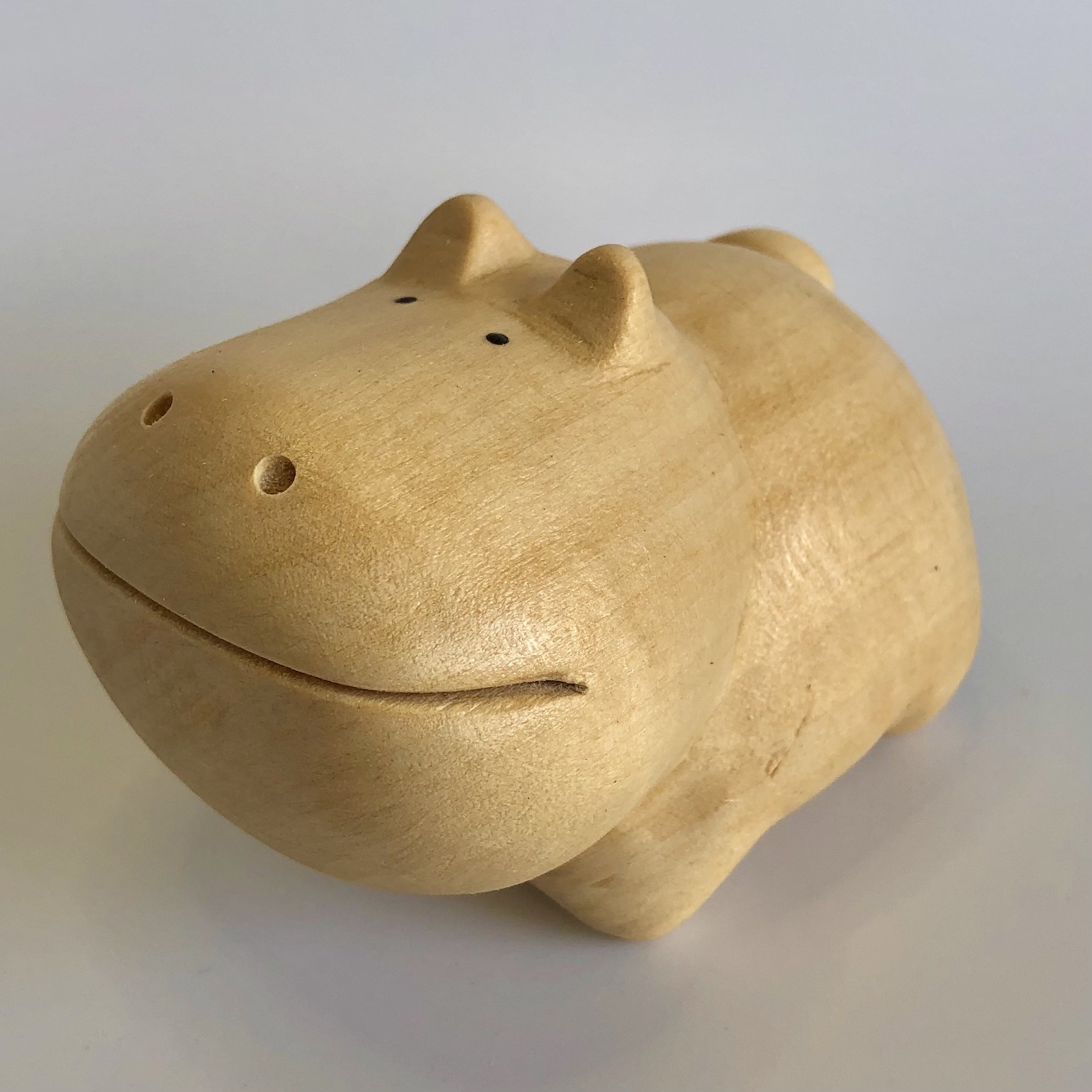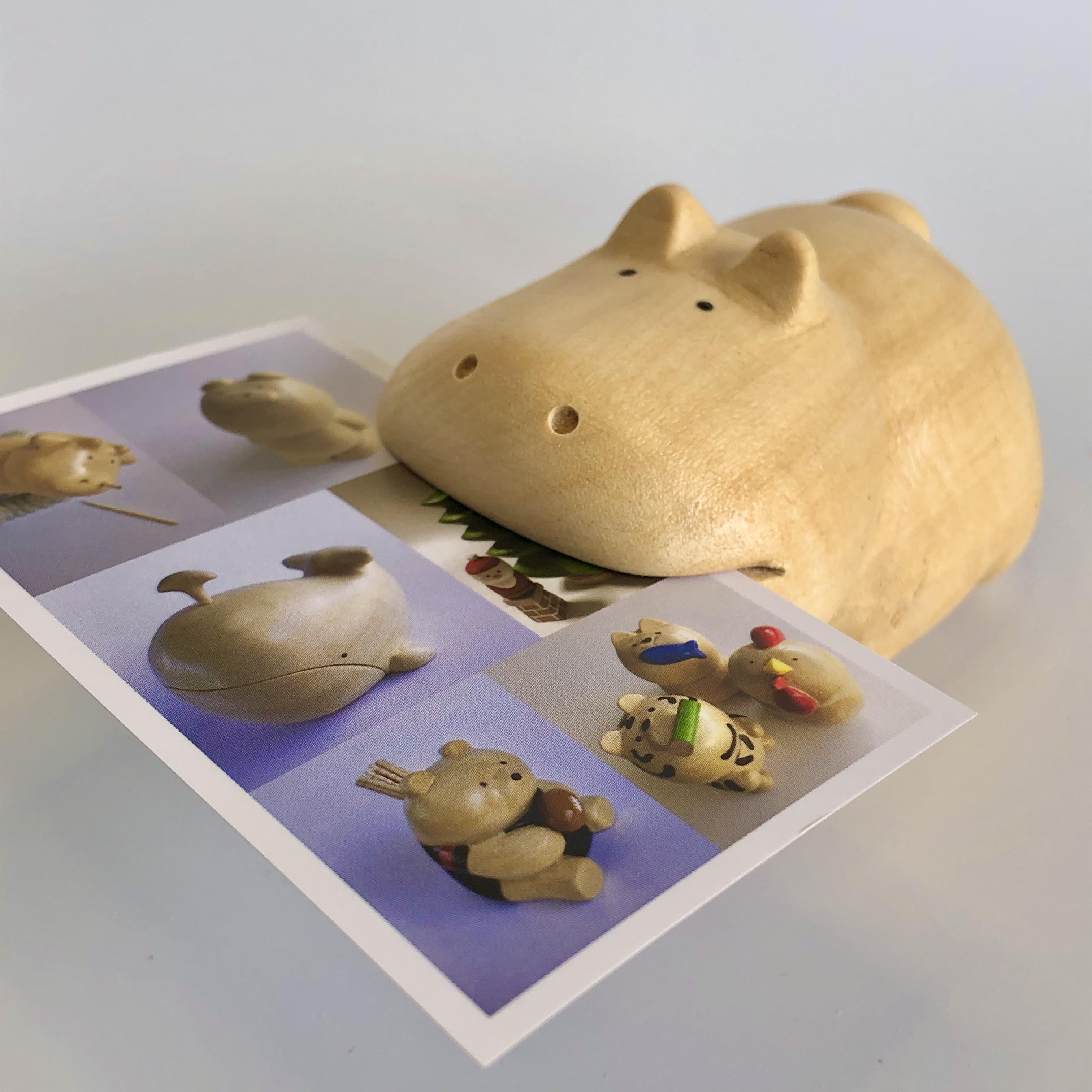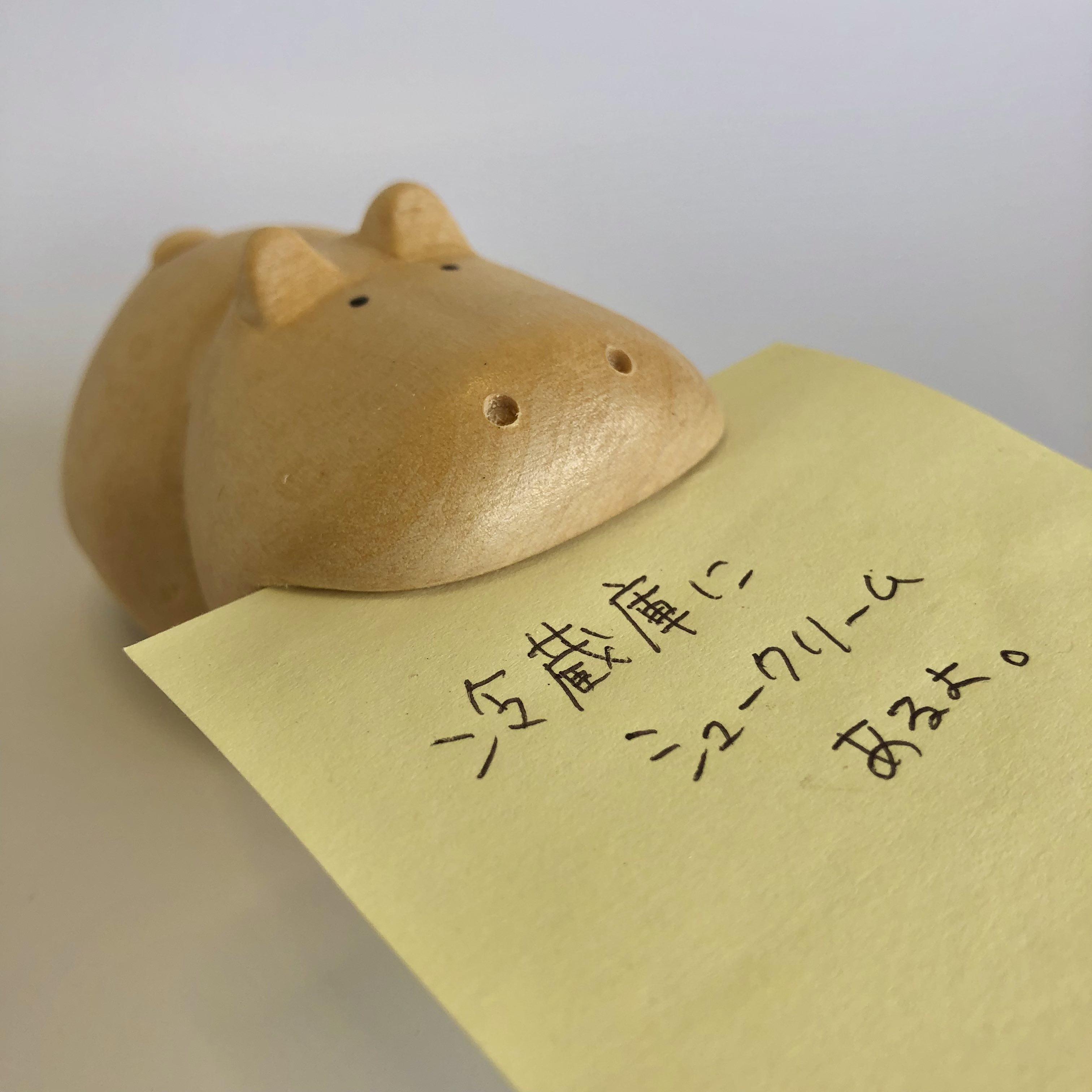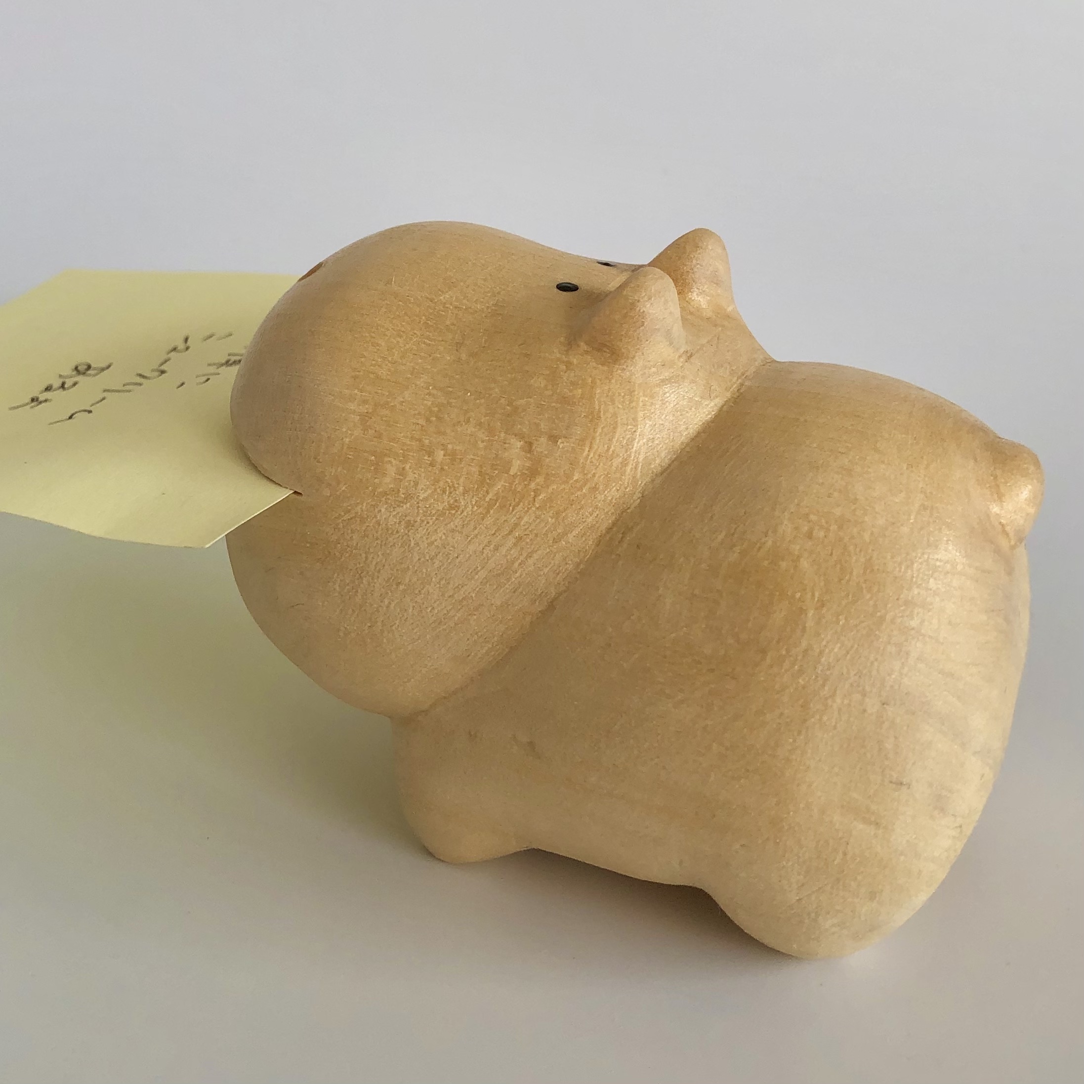 口にメモ用紙や名刺をはさむことができるので、実用をかねた置物としてオフィスのデスク脇、またご家庭でのちょっとした伝言役として活躍してくれそうなカバちゃんです!
