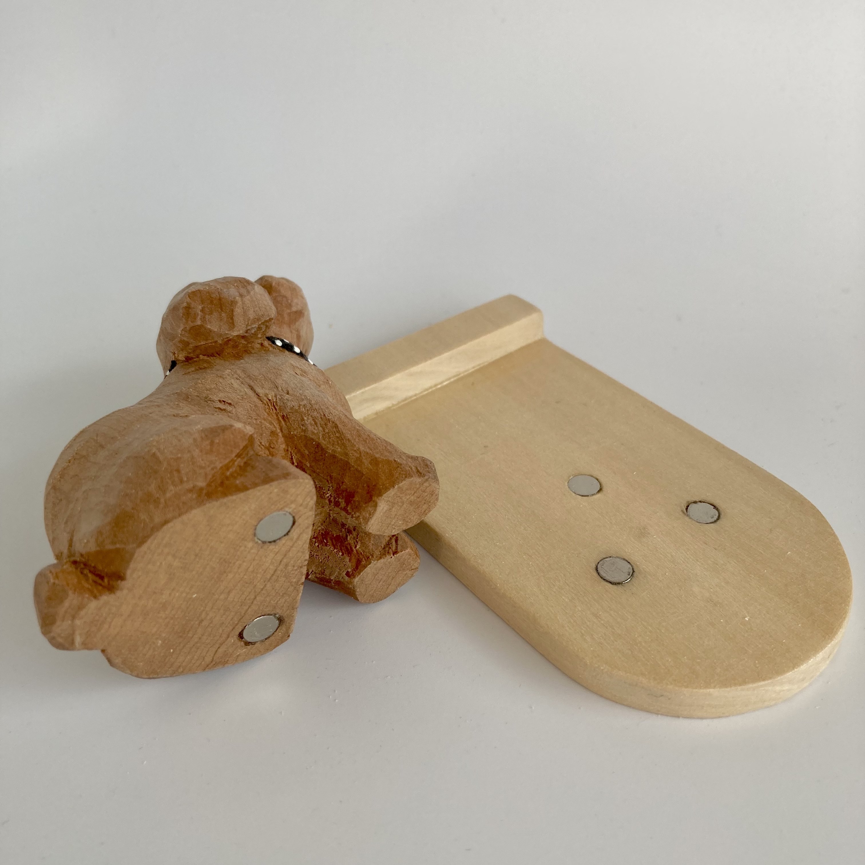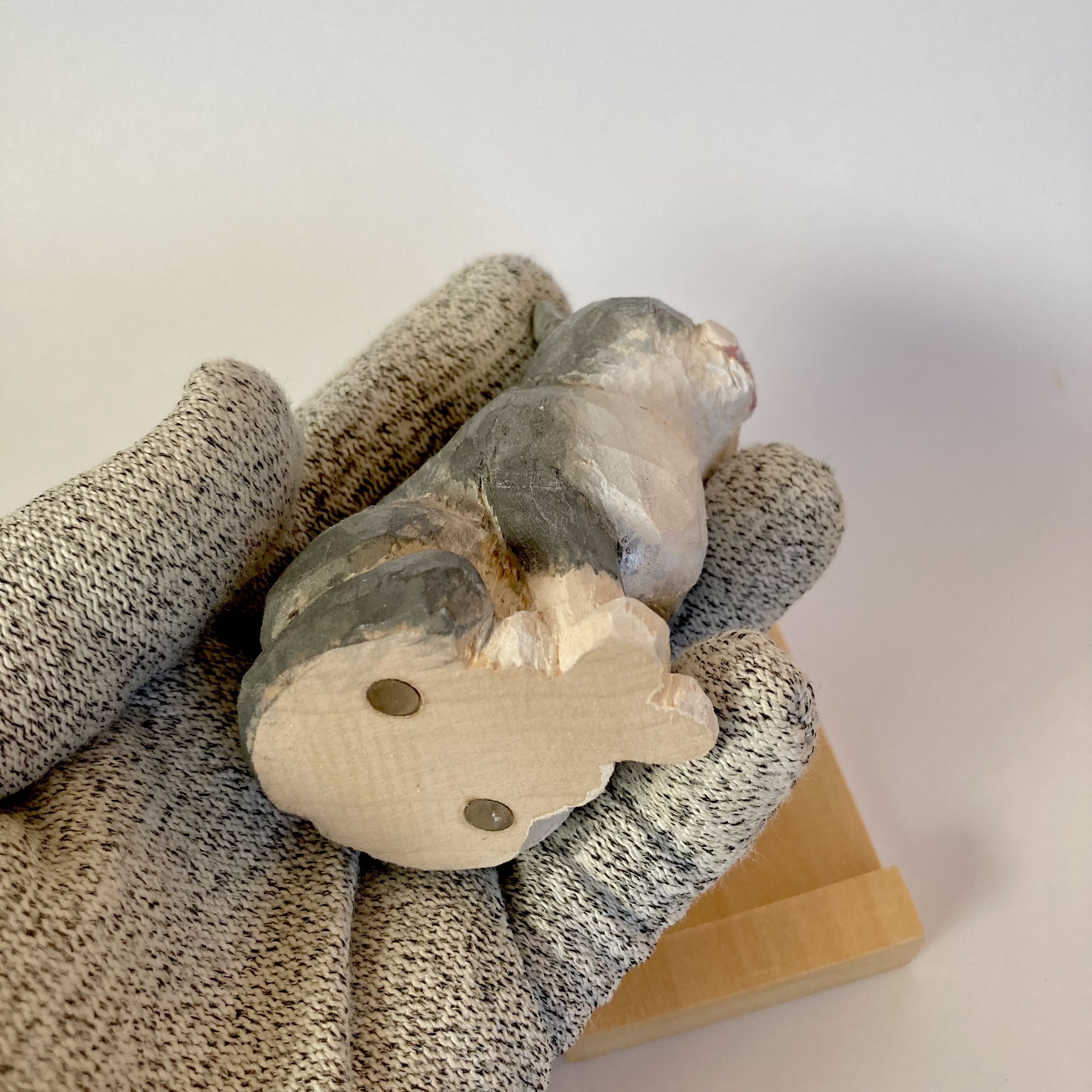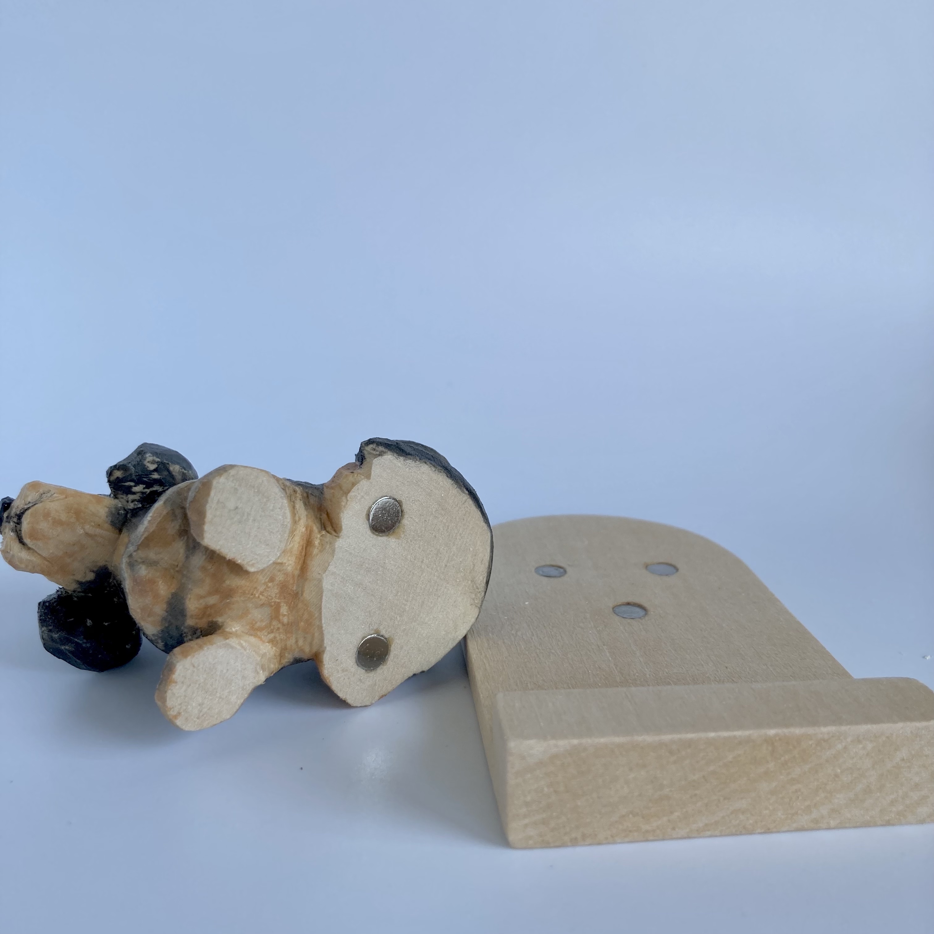 脚の裏と台座に磁石を取り付けてスマホスタンドになる仕様です。