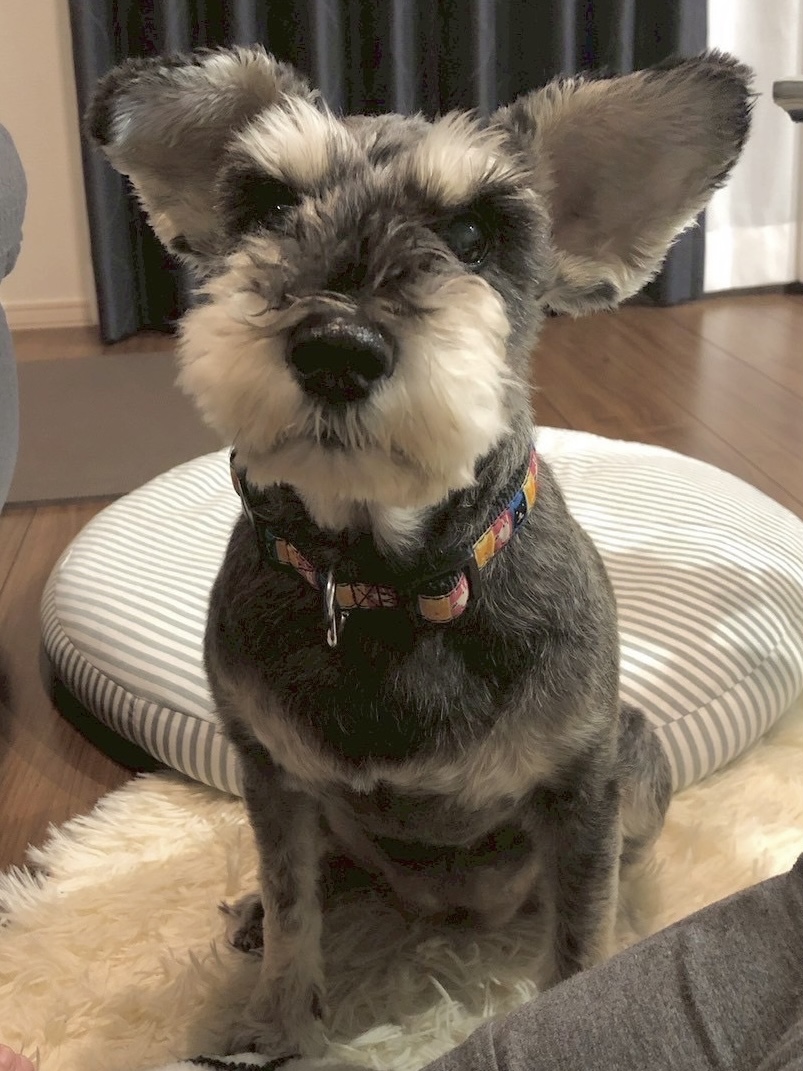 耳がピンと立っているのがチャームポイントのミニチュアシュナウザー。