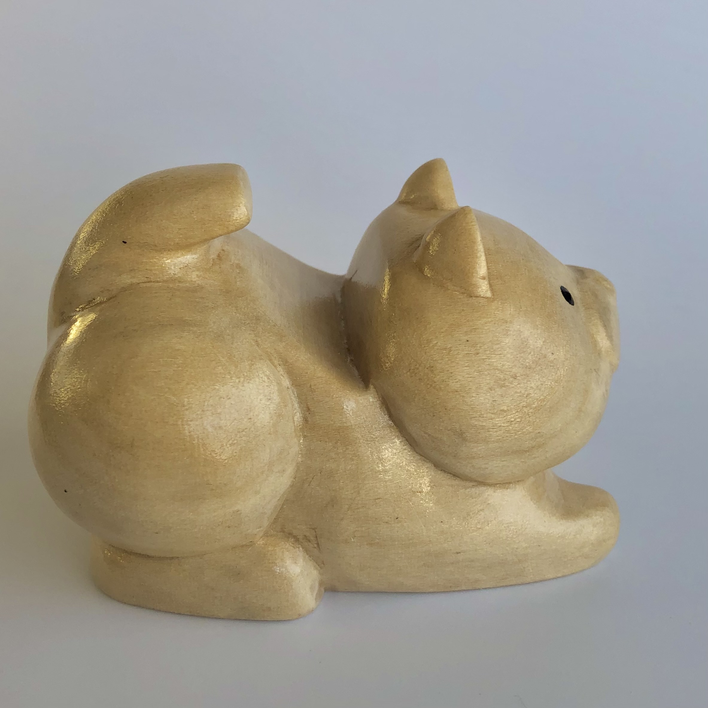 丸みのあるフォルムで愛嬌のあるネコの置物です。