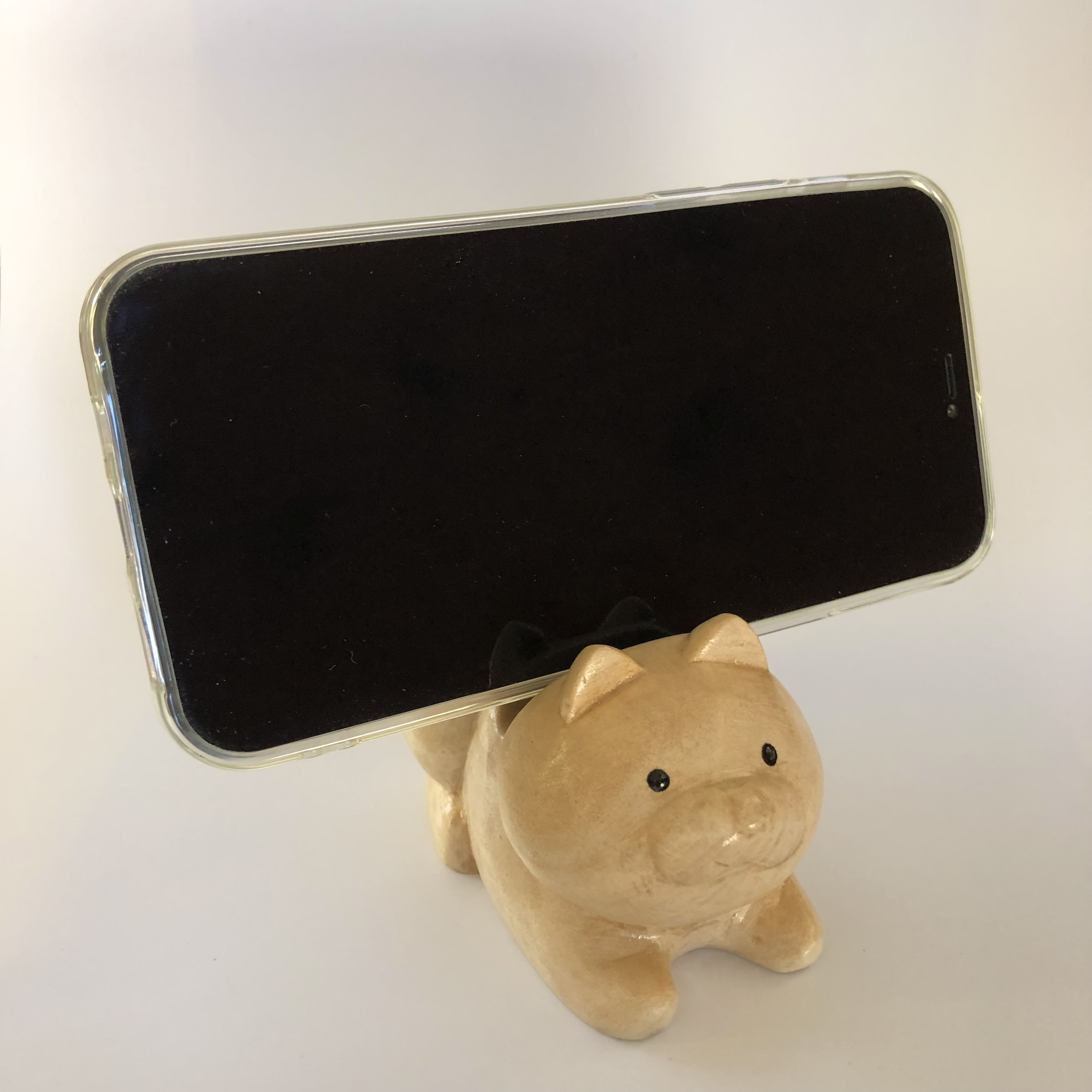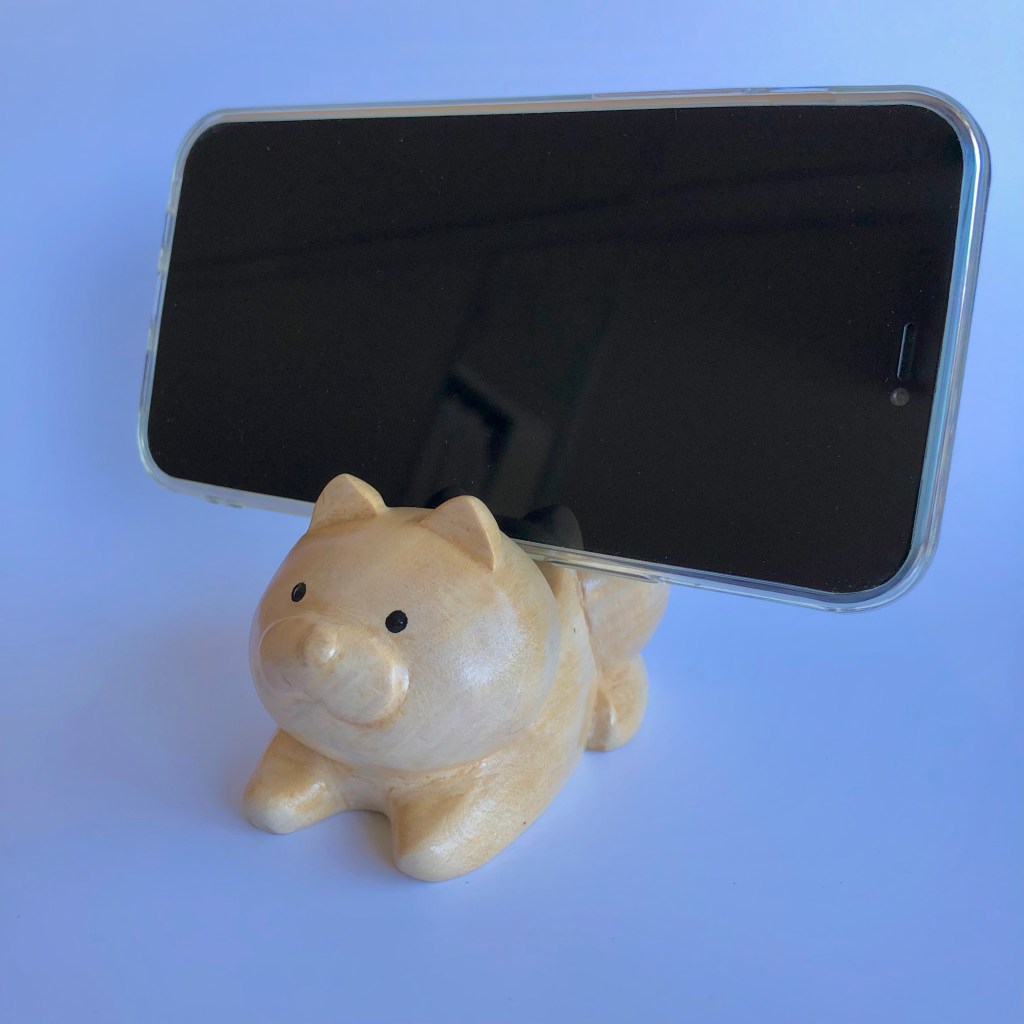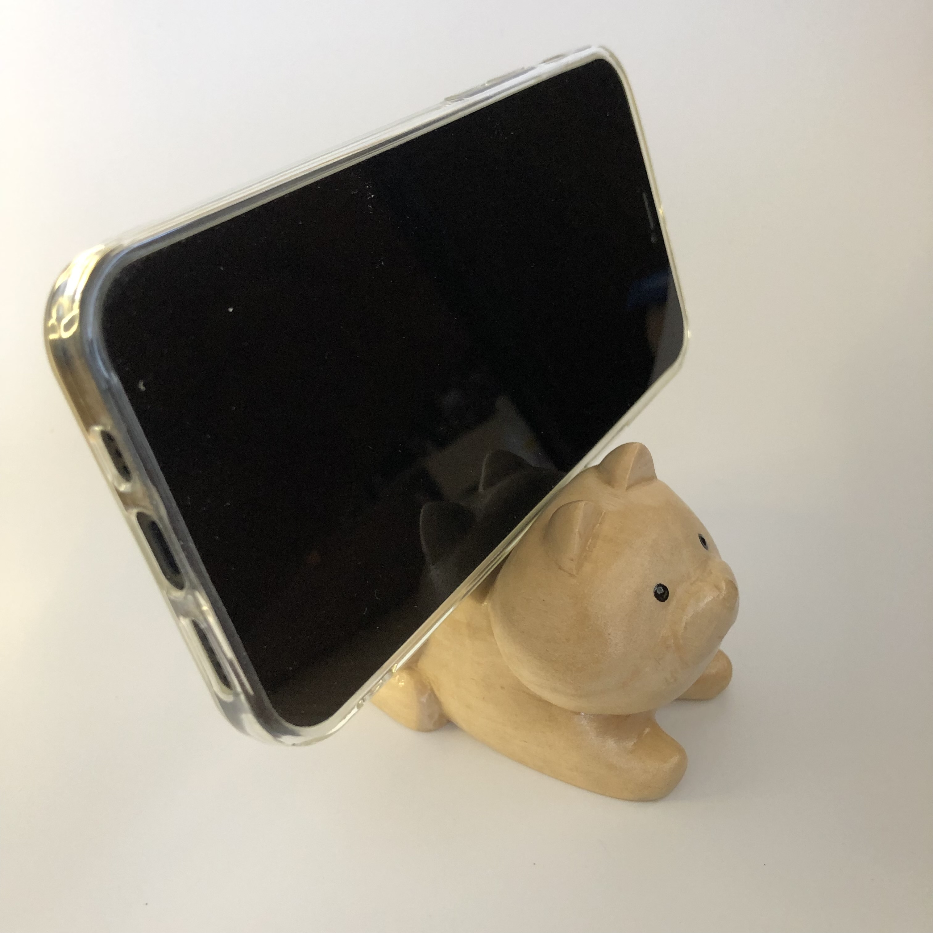 付属の台と磁石同士で合体させるとスマホスタンドや名刺置きなり、口にはメモや名刺もくわえられる「使える置物」です。